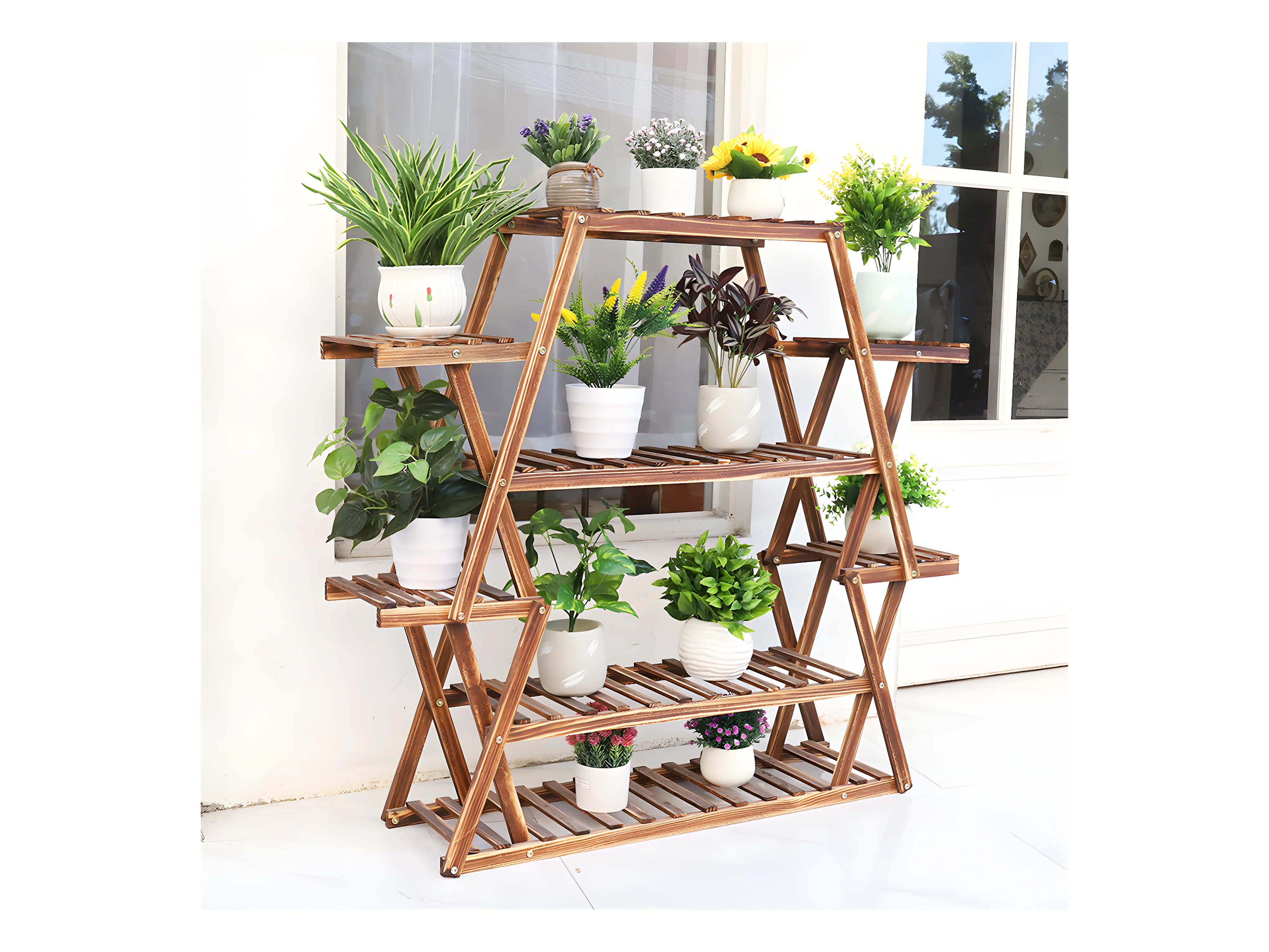 Étagère plante intérieure porte fleur extérieure à 5 niveaux support pot de fleur 96x95x25cm