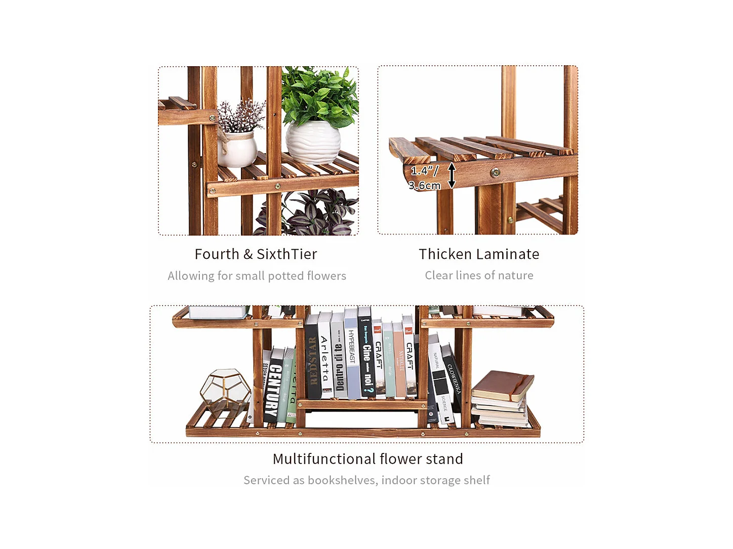 Porte plante étagère plantes à 6 tablettes support pour jardin terrasse balcon maison 92x58x25.4cm