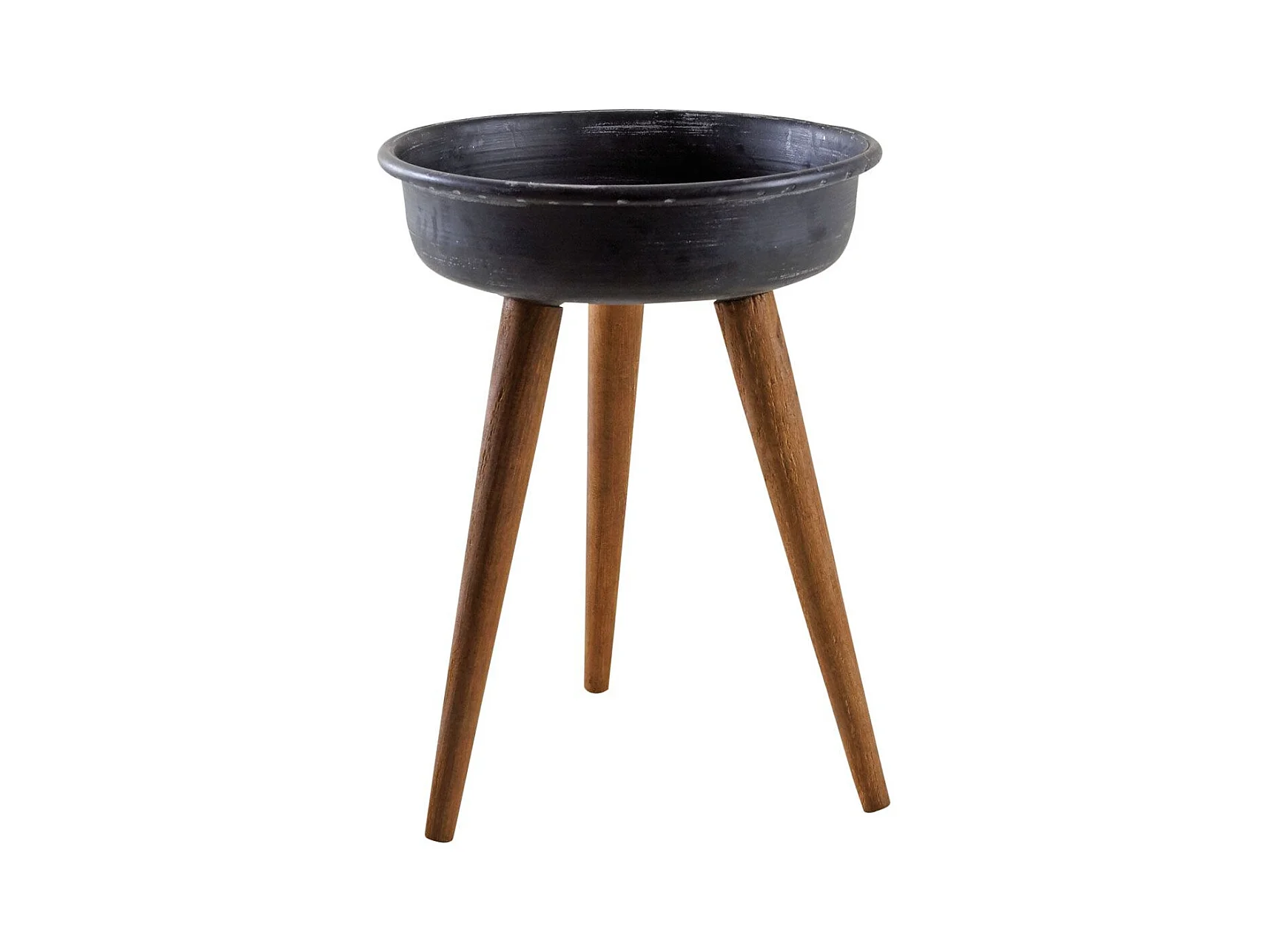 MAORI - Cache-Pot Tressé en Jacinthe d'Eau Naturelle Support en Métal Noir