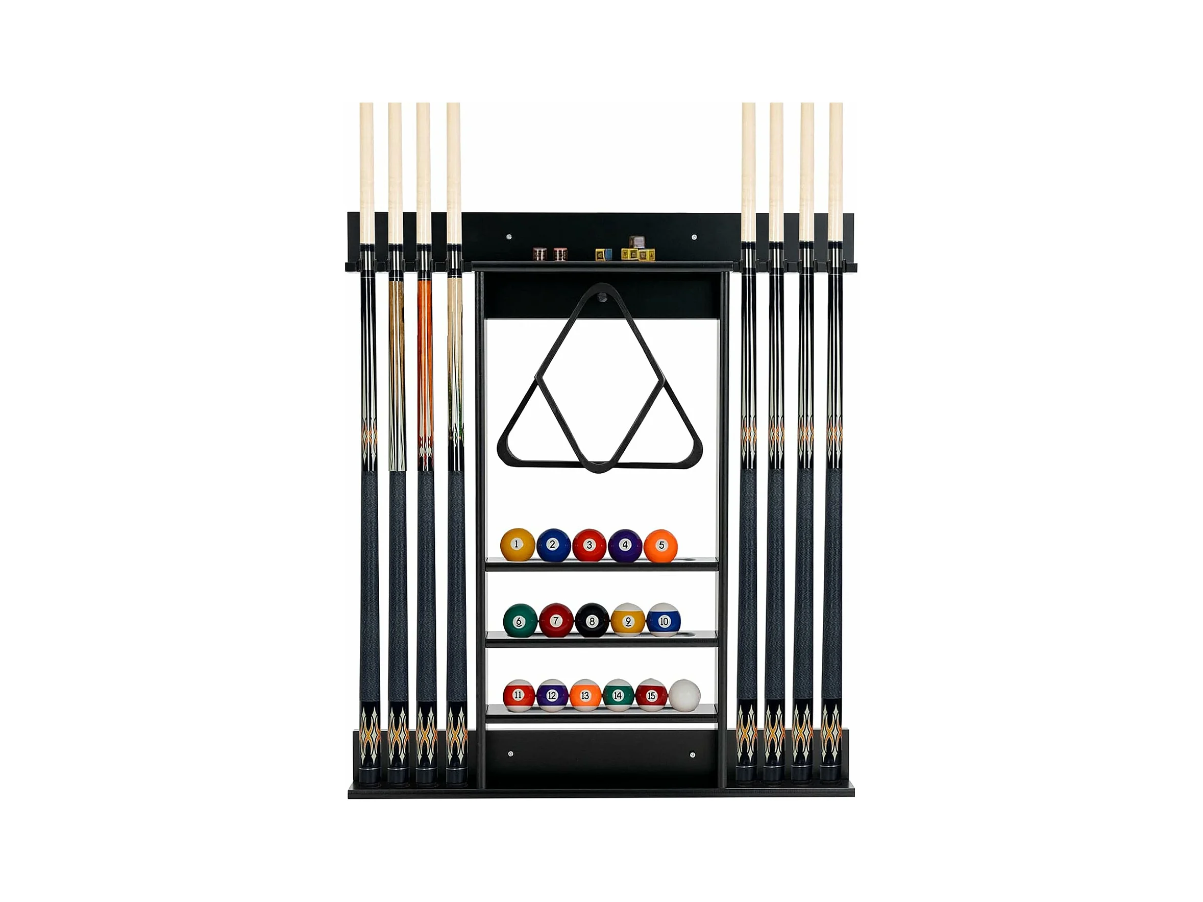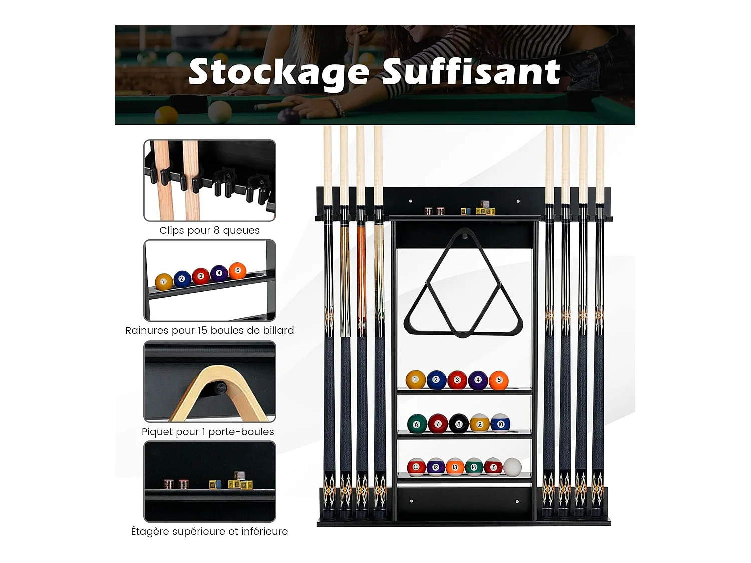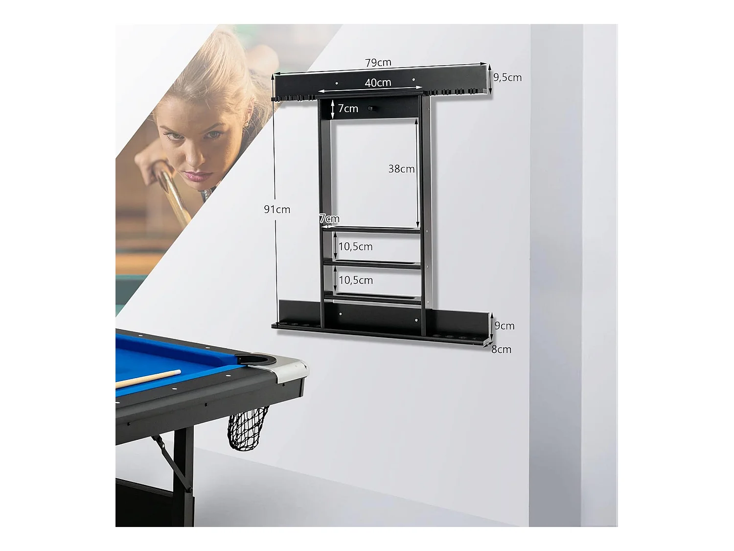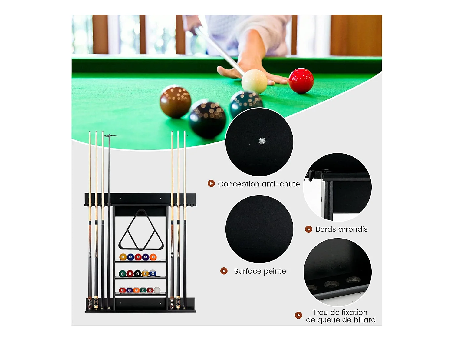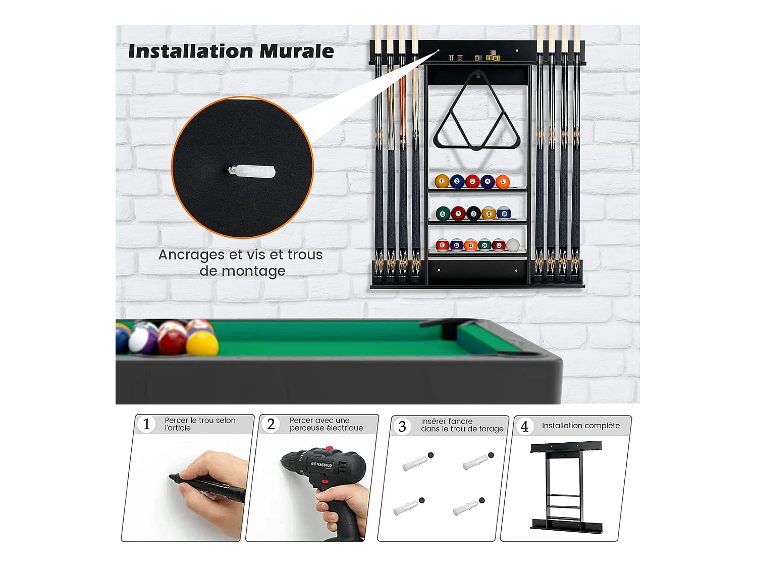 Porte-queues de billard mural, support et rainures à 3 niveaux 15 porte-balles (noir)