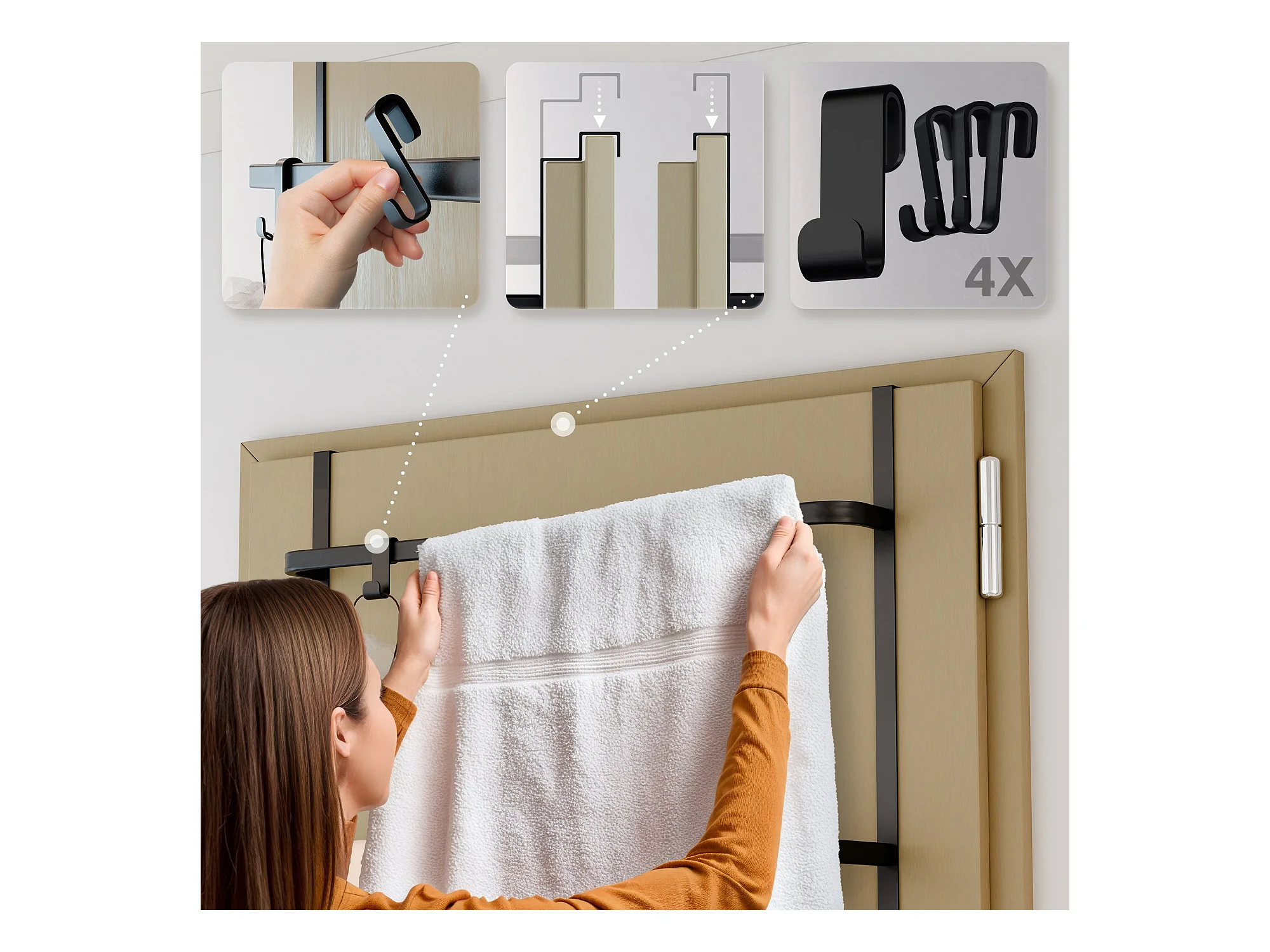 Porte-serviettes sur pied - 2 barres noires, style design SFAX