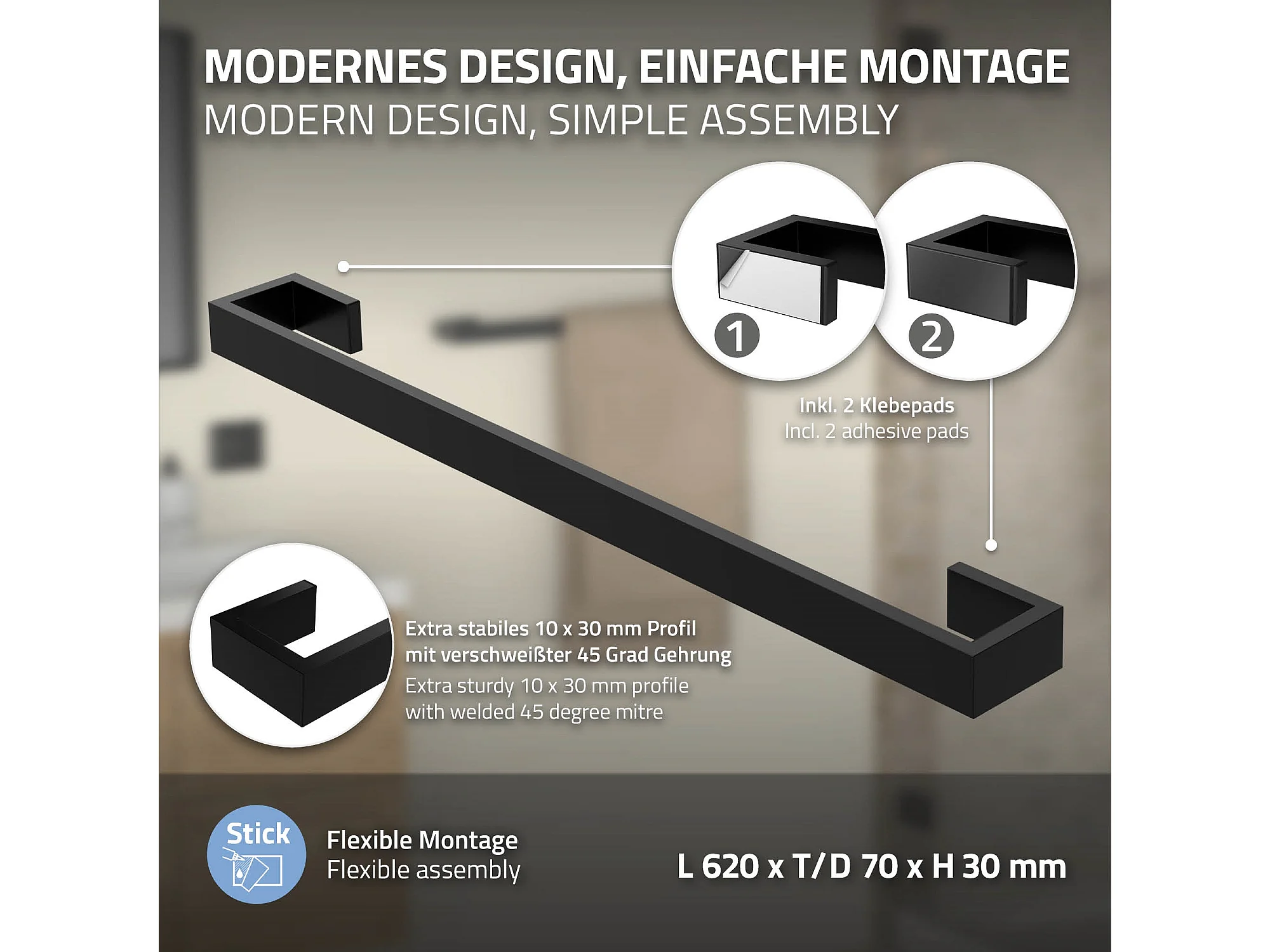 Porte-serviettes sans percer 59cm noir avec 2 barres et 2 crochets salle de bain