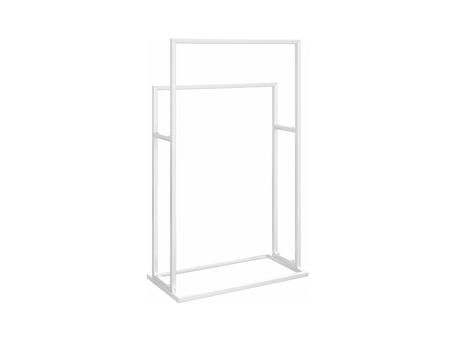 Porte-serviettes sur pied KUNO portant pour vêtements et linge de salle de bain avec 3 niveaux d'étendage, structure en métal blanc