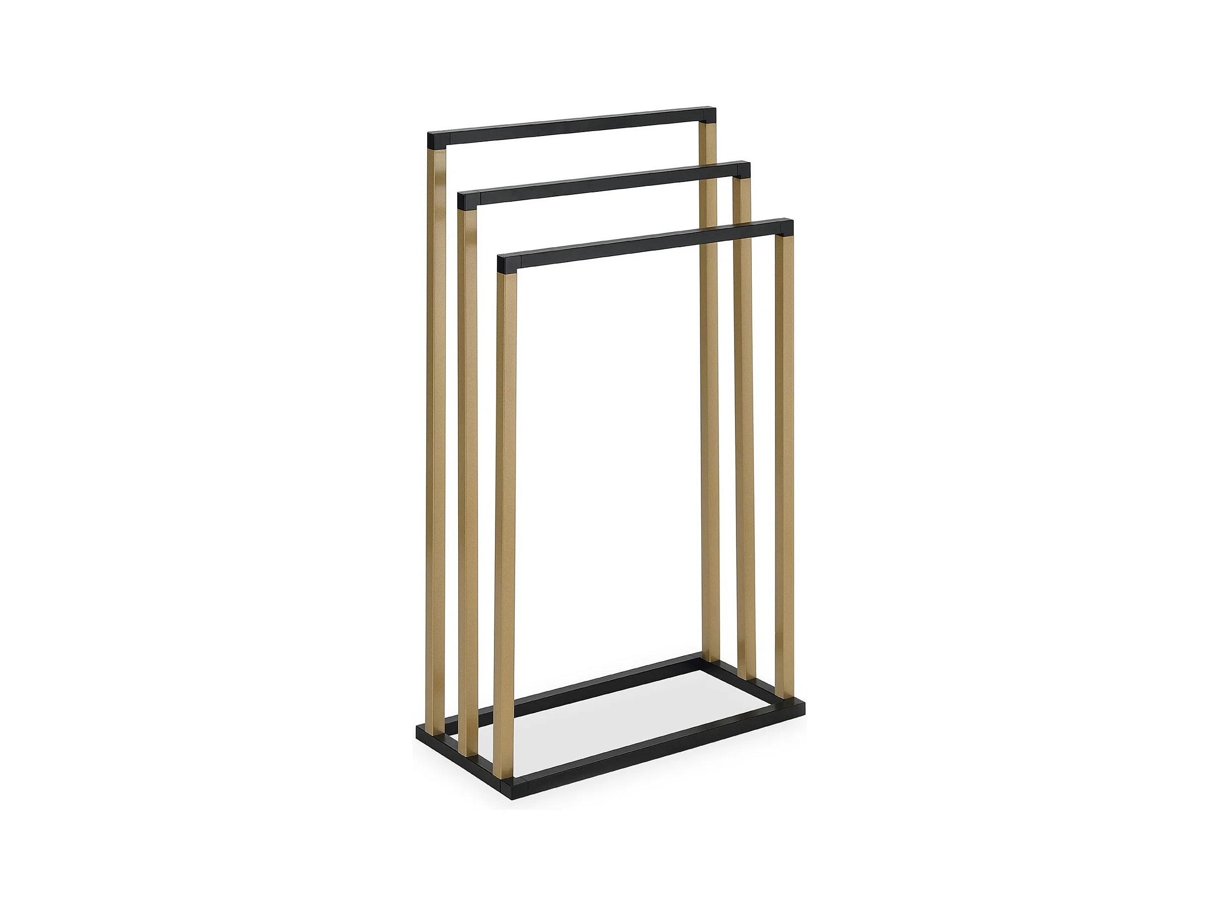 Porte-serviettes sur pied KUNO portant pour vêtements et linge de salle de bain avec 3 niveaux d'étendage, en métal noir et doré