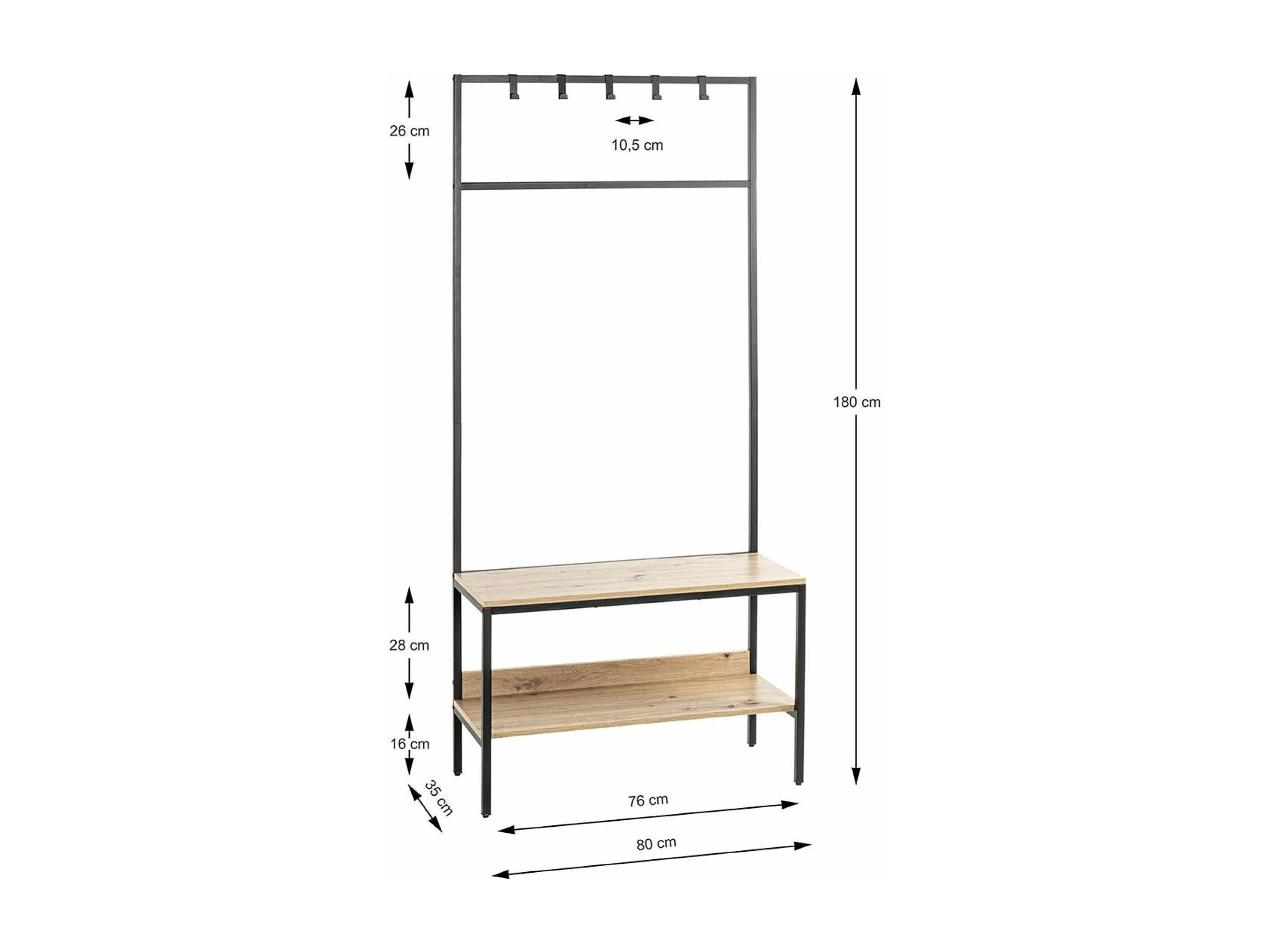 Portemanteau en bois coloris chêne et métal coloris noir -longueur 80 x profondeur 35 x hauteur 180 cm