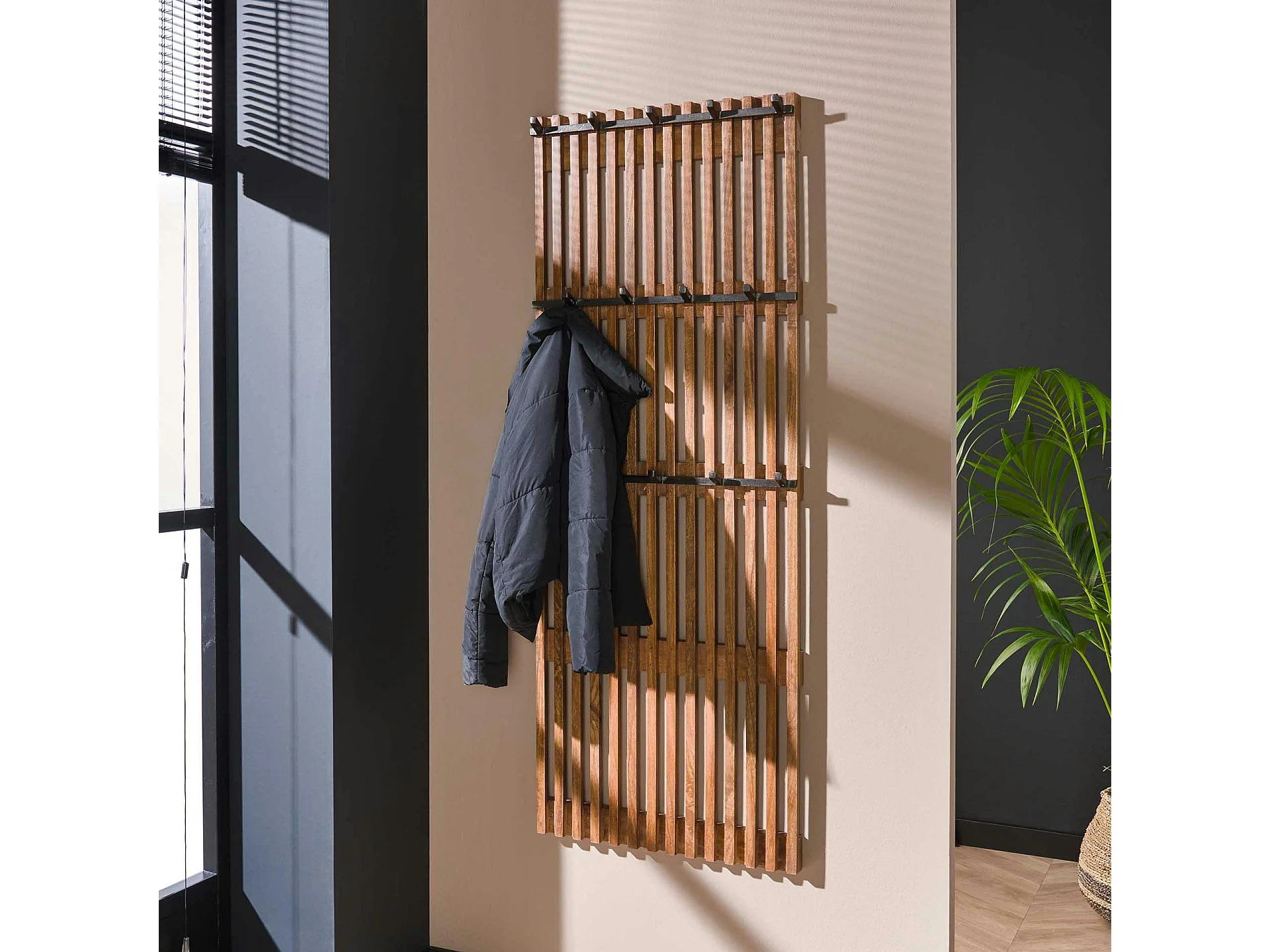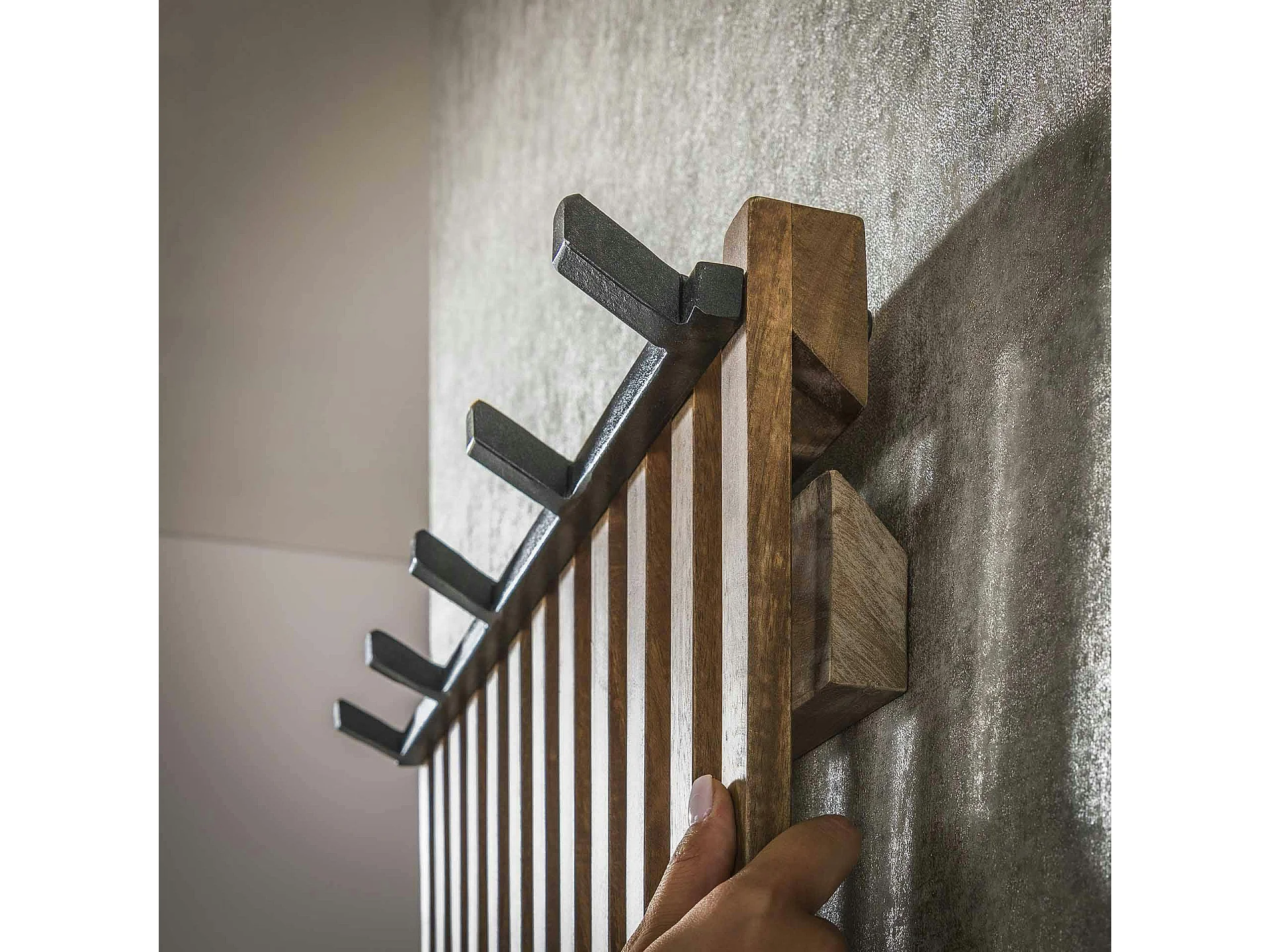 Portemanteau en bois de manguier ajouré 14 crochets DELHI