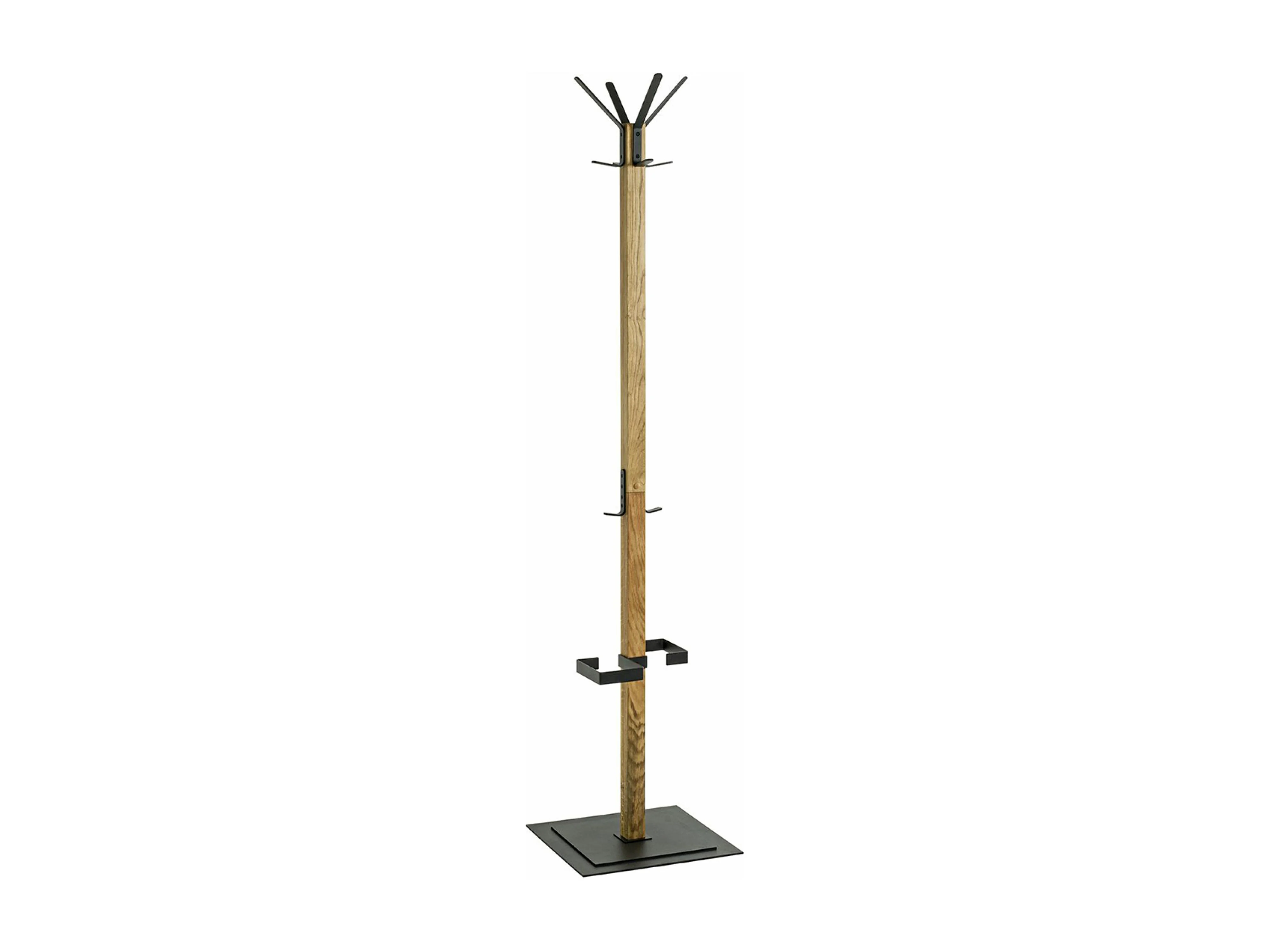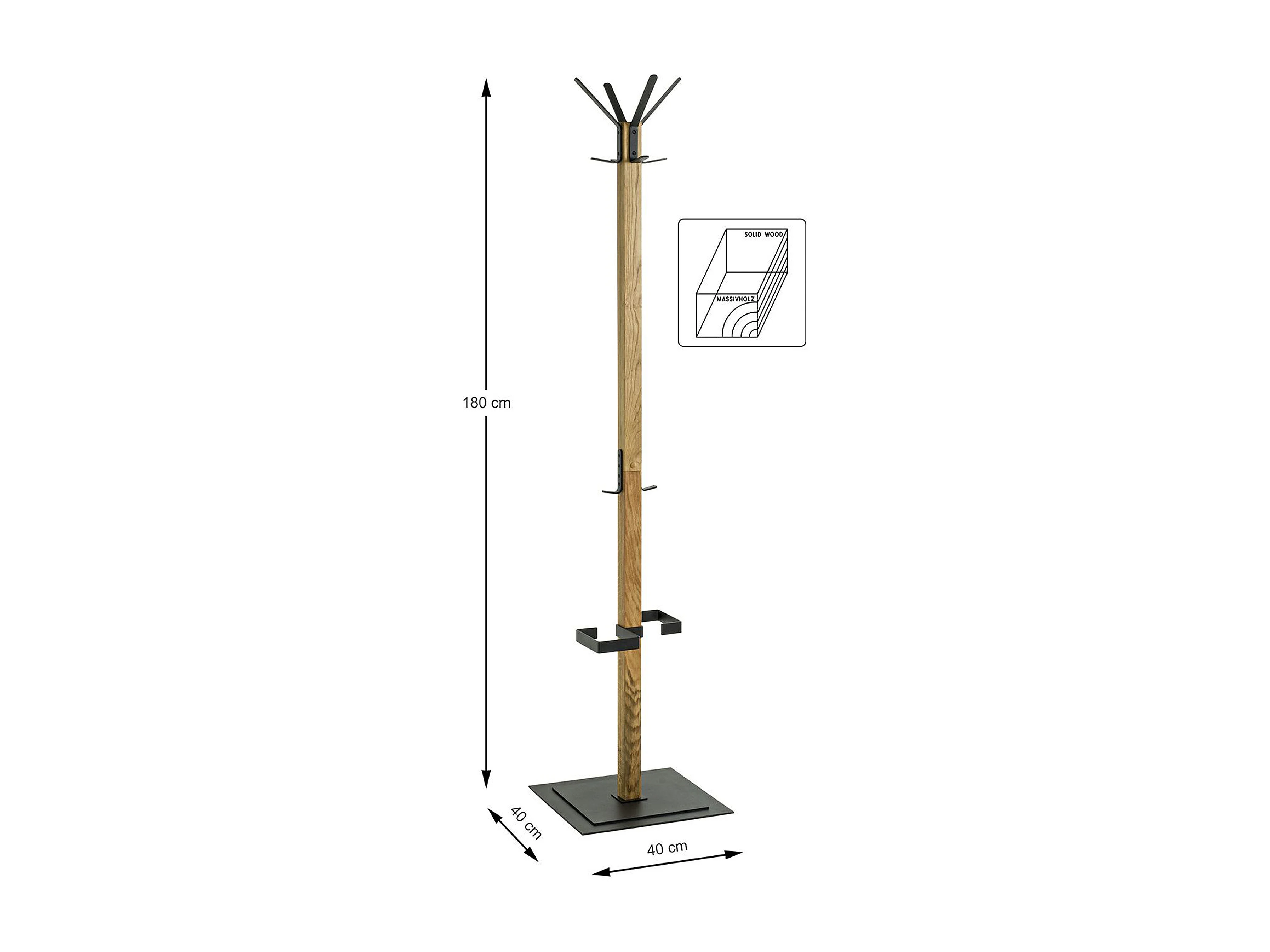 Portemanteau en bois massif coloris chêne et métal noir -longueur 40 x profondeur 40 x hauteur 180 cm