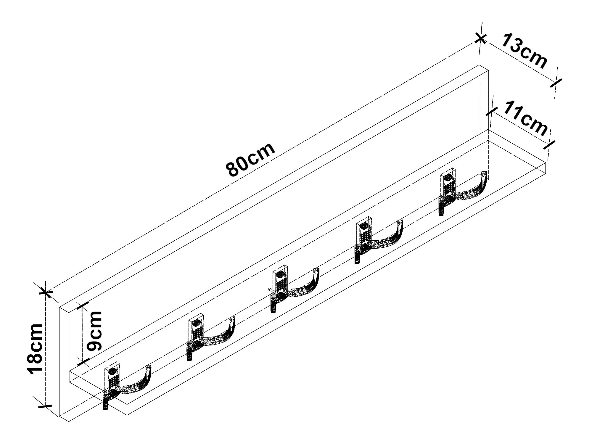 Portemanteau Dpons, Portemanteau, Surmatelas, Cintre mural, 64x4 h79 cm, Chêne