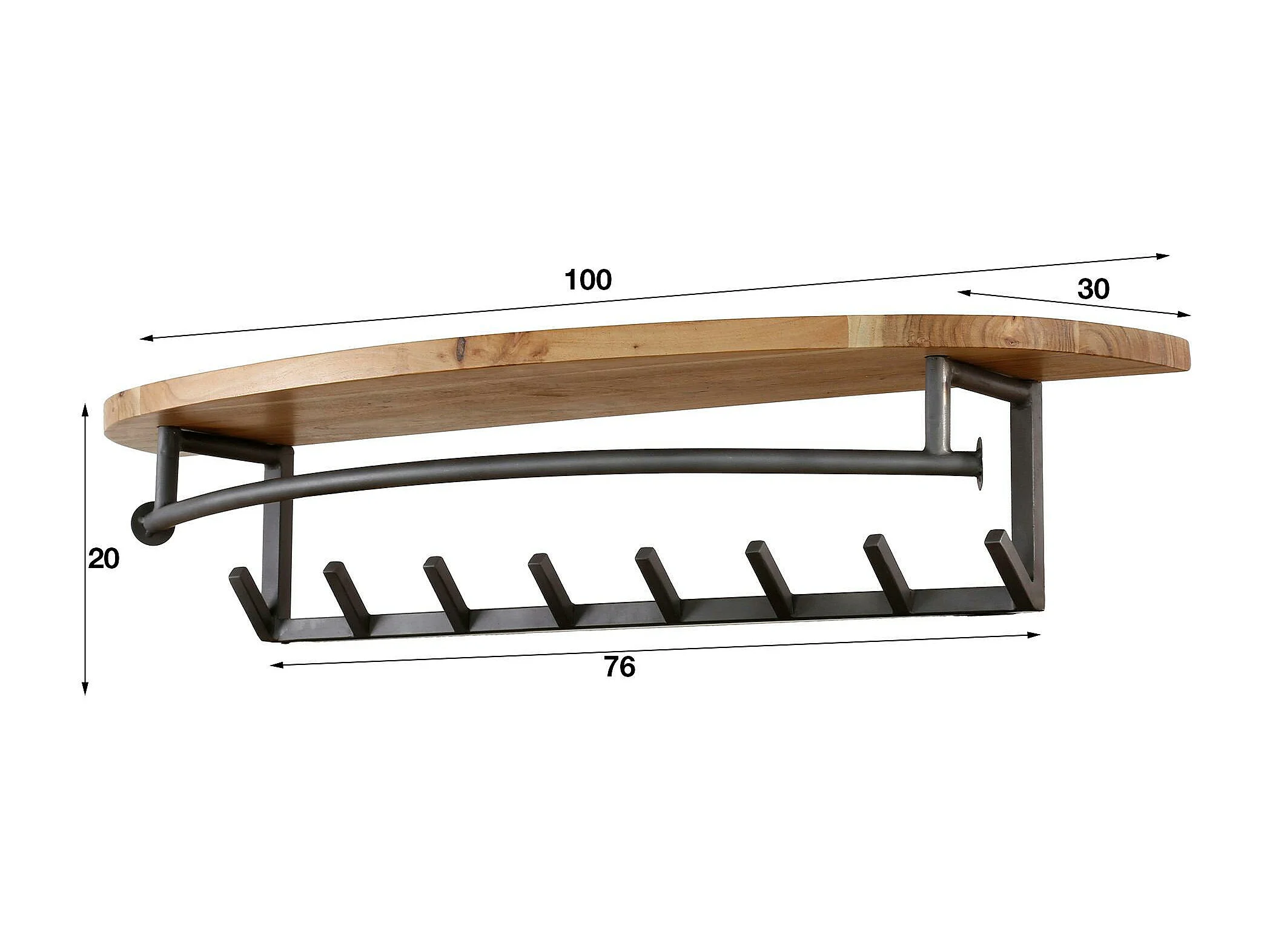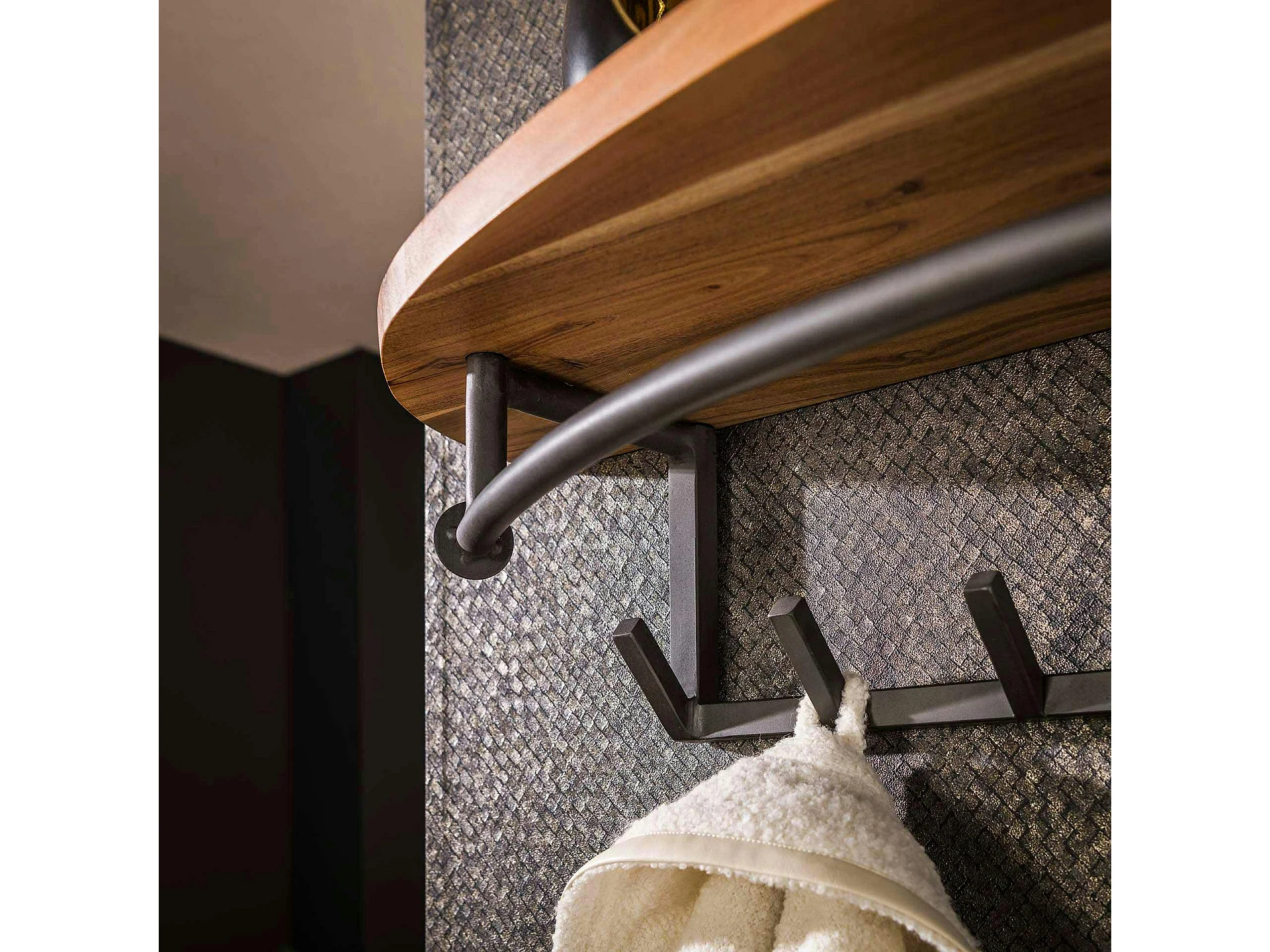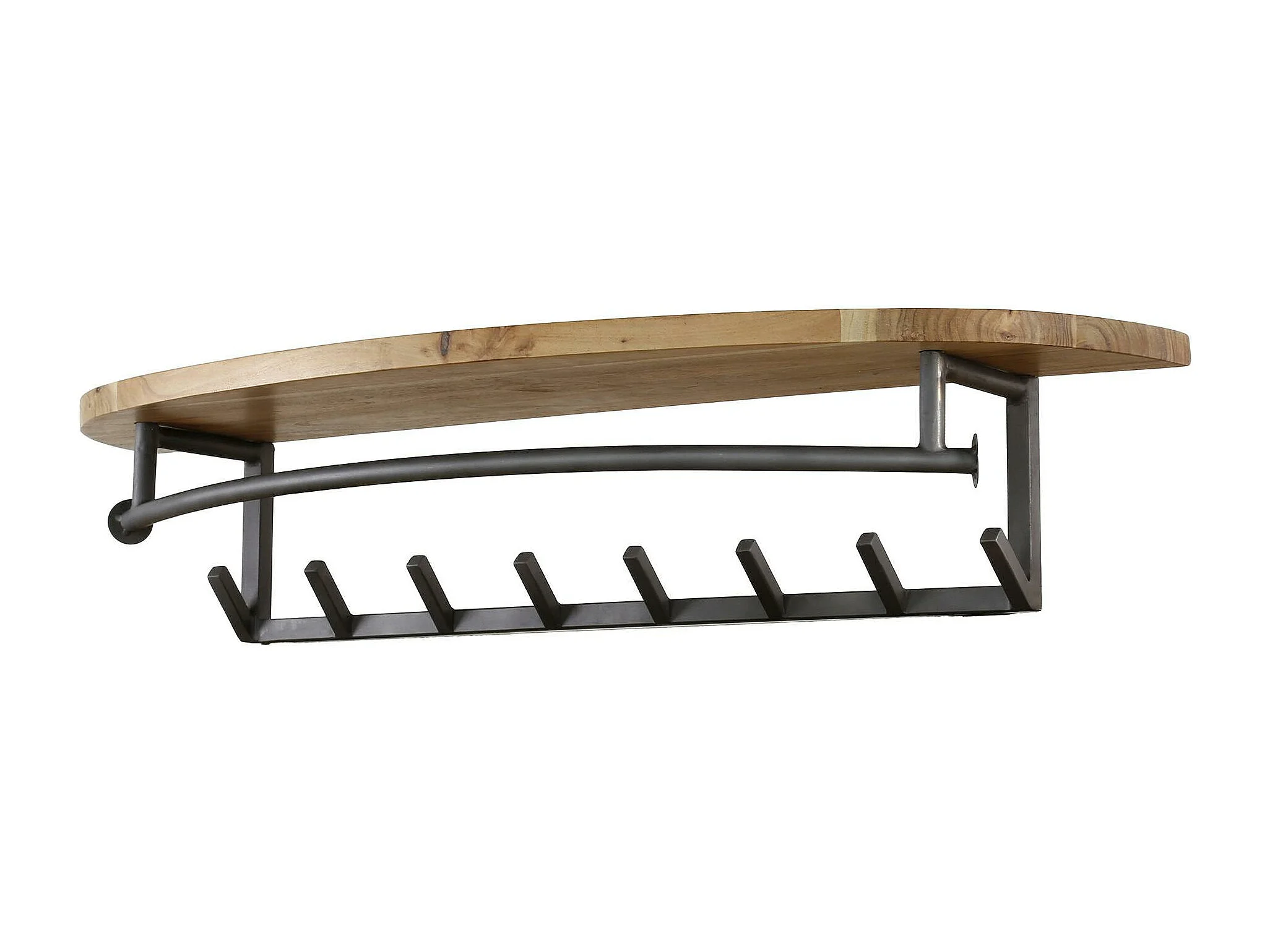 Portemanteau mural 8 accroches 1 étagère ronde en bois MELBOURNE