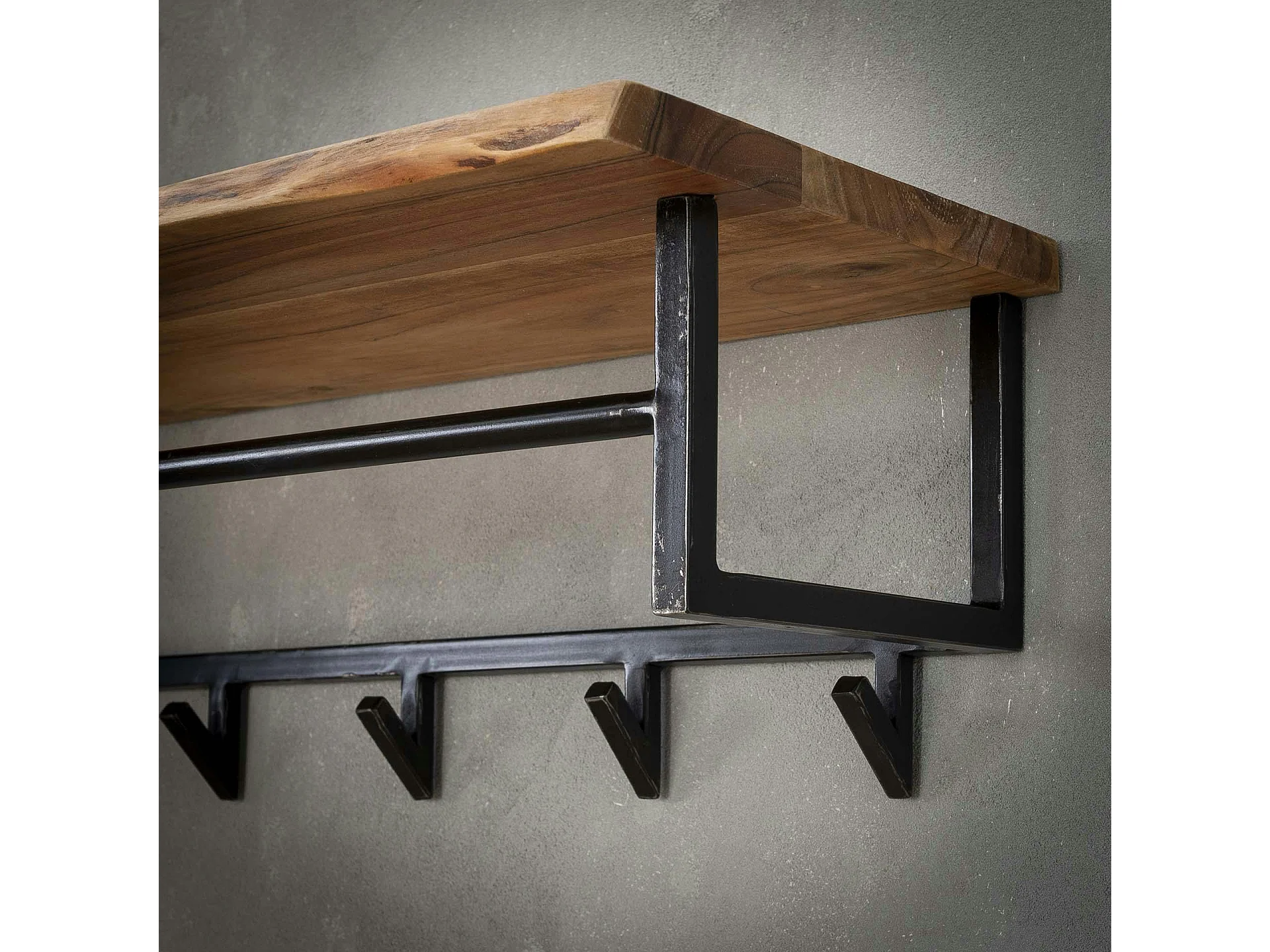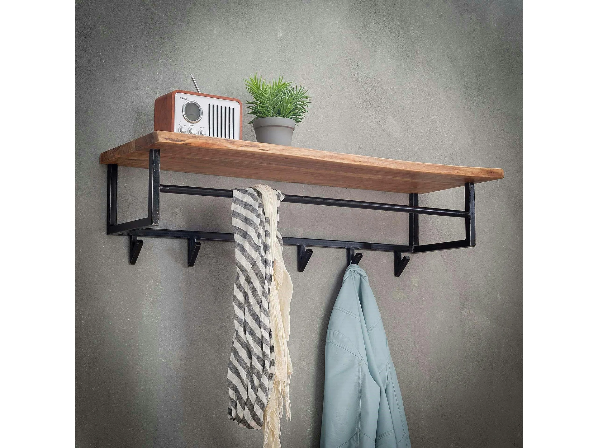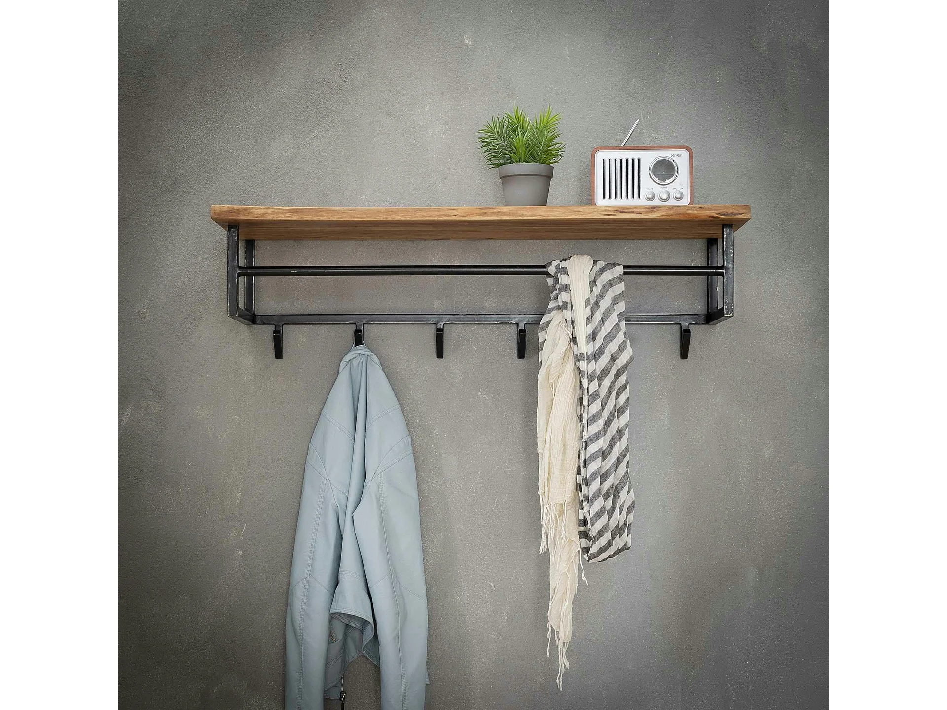 Portemanteau mural bois 1 étagère 6 crochets TRIBECA