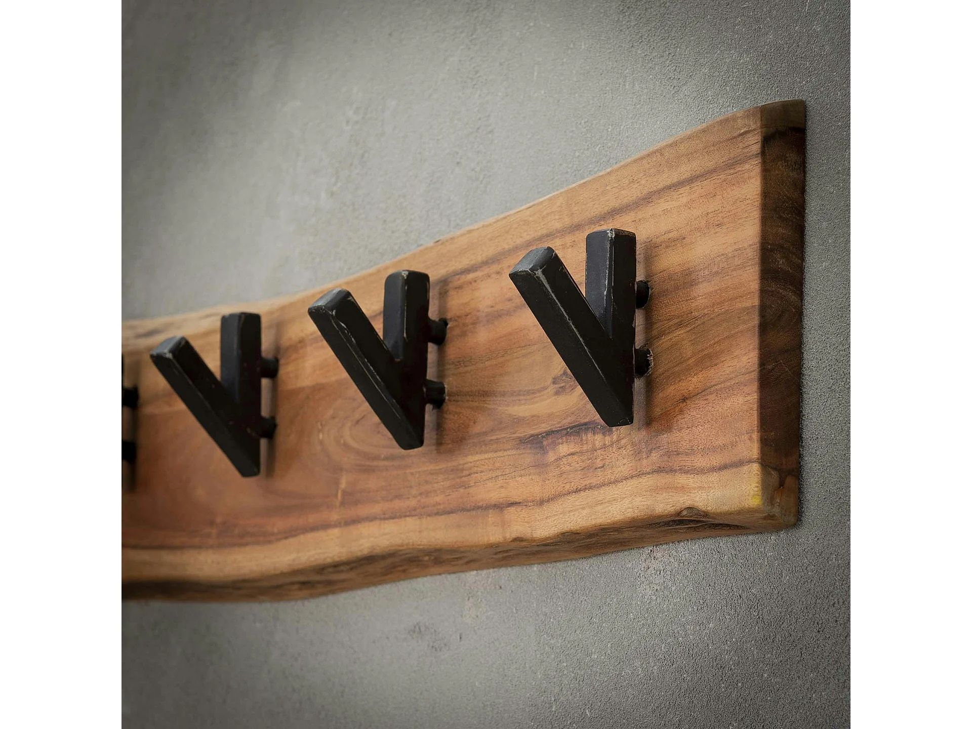 Portemanteau mural bois massif 6 double crochets TRIBECA