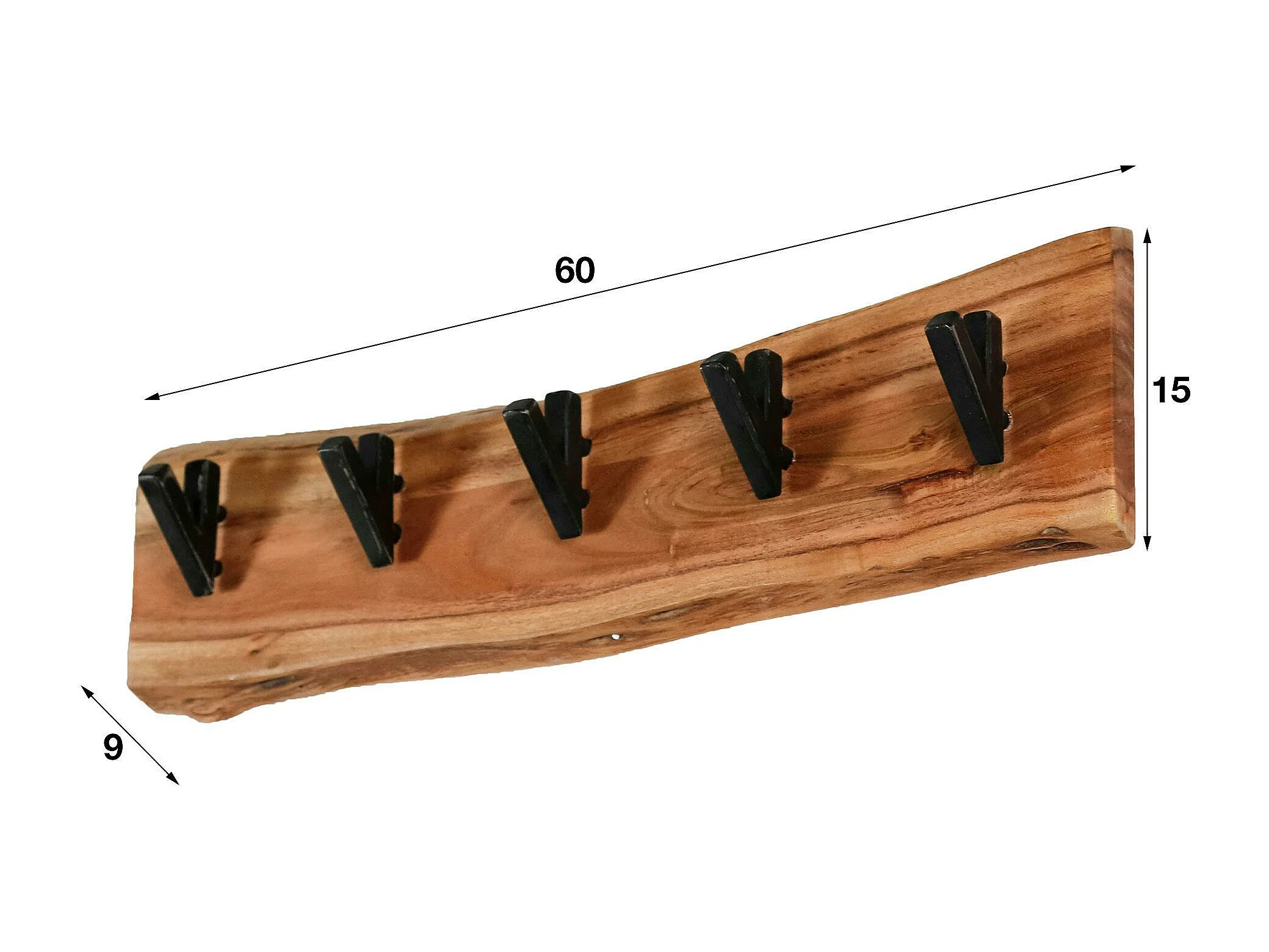 Portemanteau mural bois massif 5 crochets TRIBECA