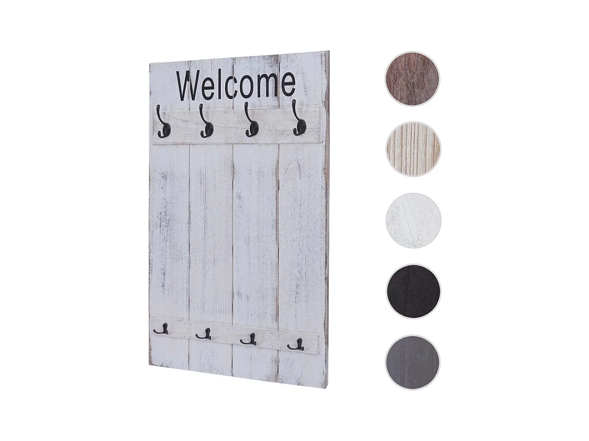 Portemanteau mural HWC-C89, HOME, 8 crochets, 91x60cm ~ blanc shabby