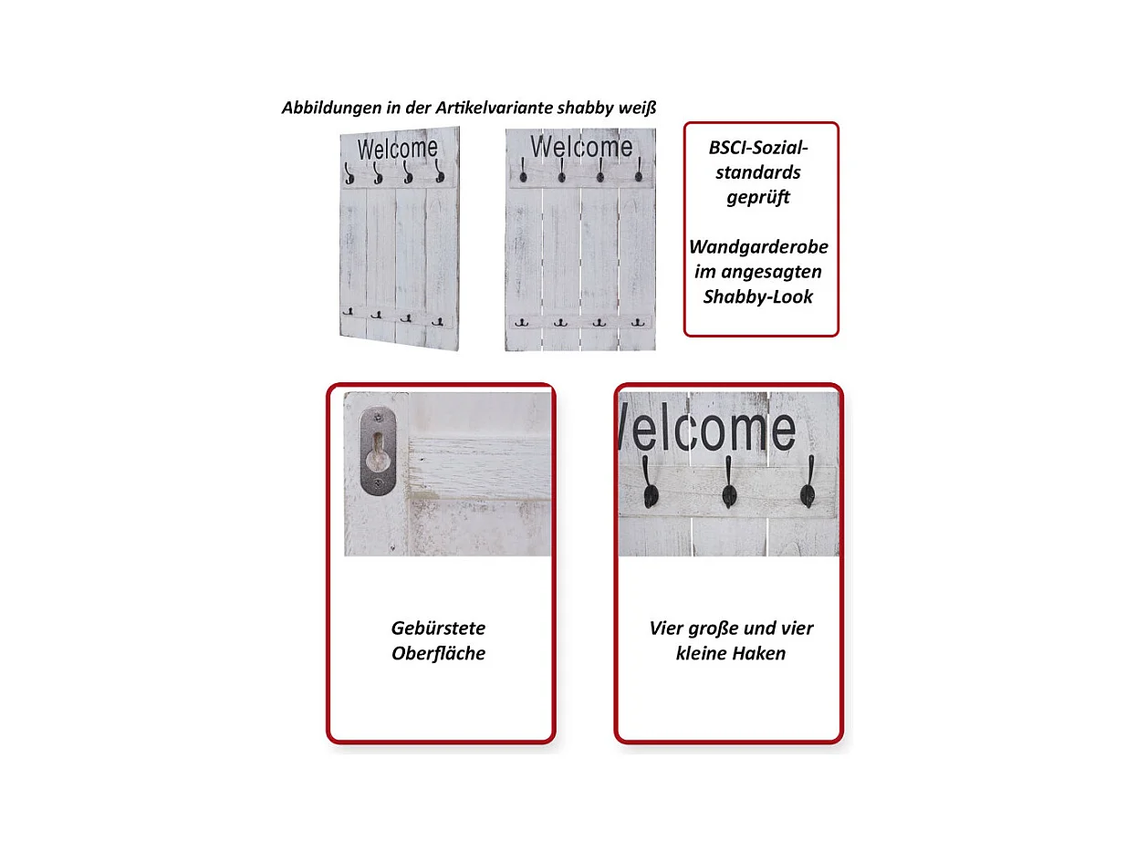 Portemanteau mural HWC-C89, FAMILY, 8 crochets, 60x90cm - blanc shabby