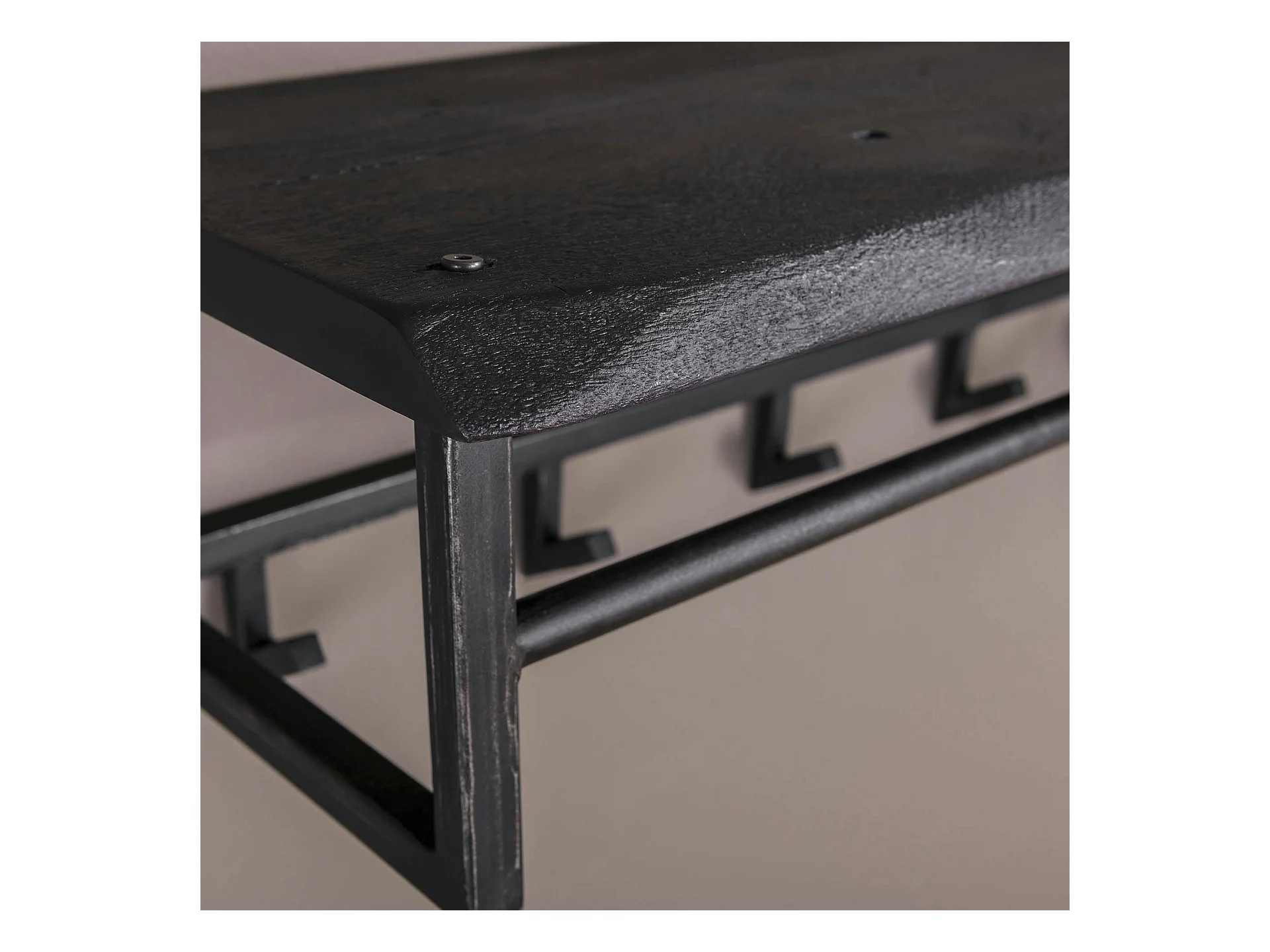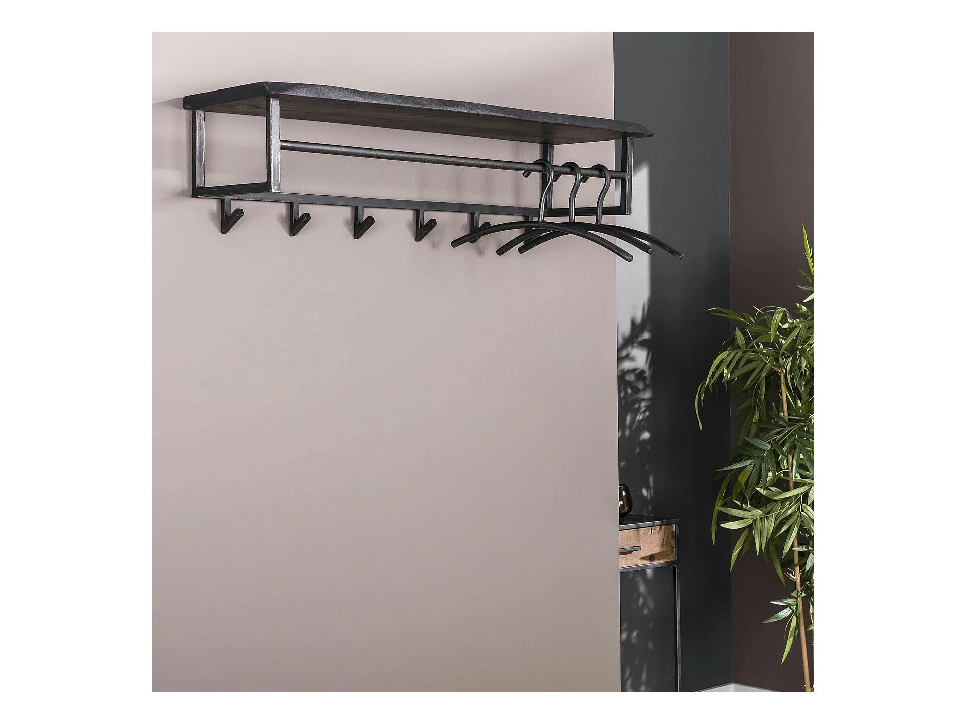 Portemanteau mural noir 6 crochets 1 étagère bois MELBOURNE