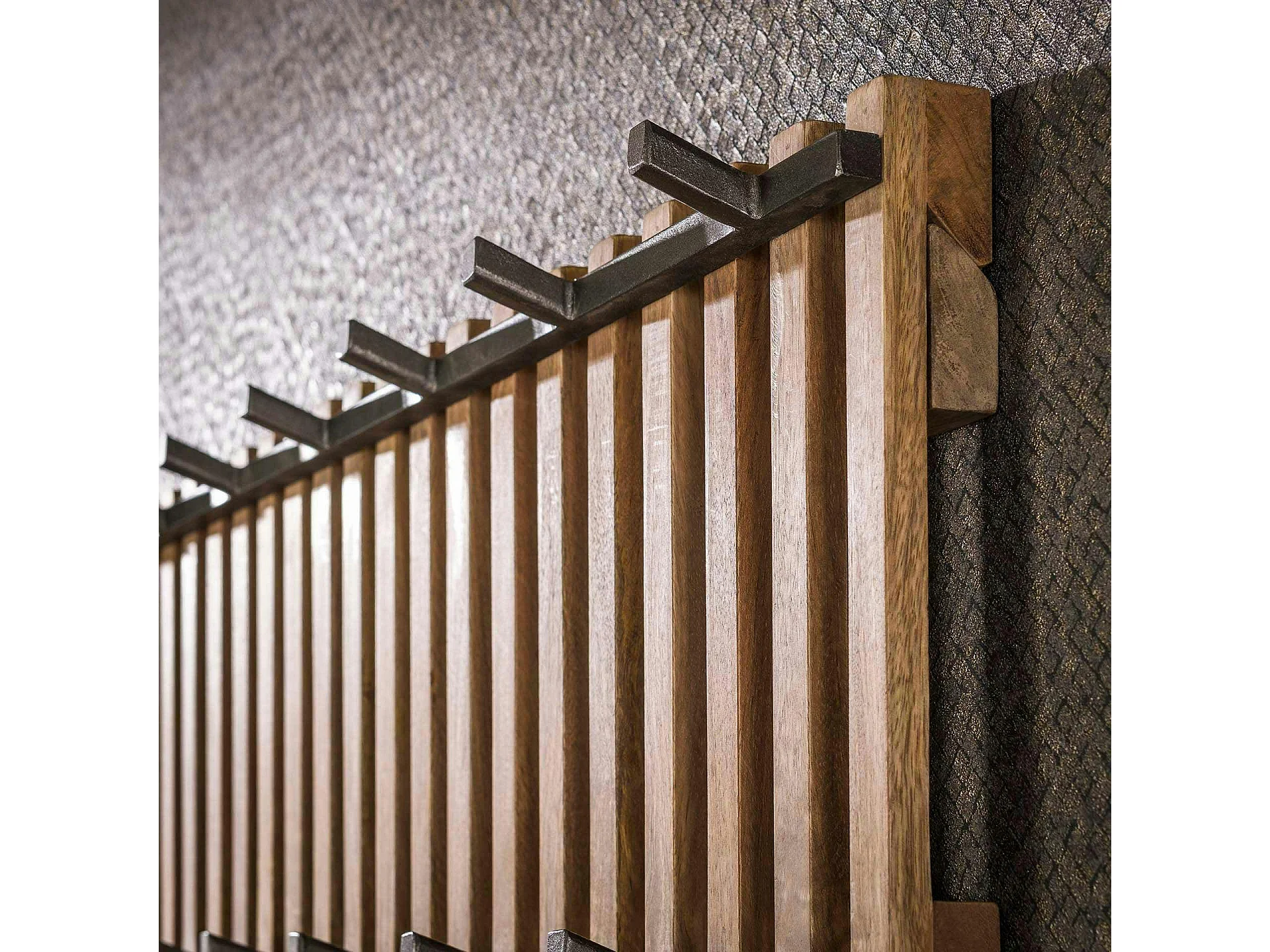 Portemanteau mural rainuré en bois de manguier 13 accroches DELHI