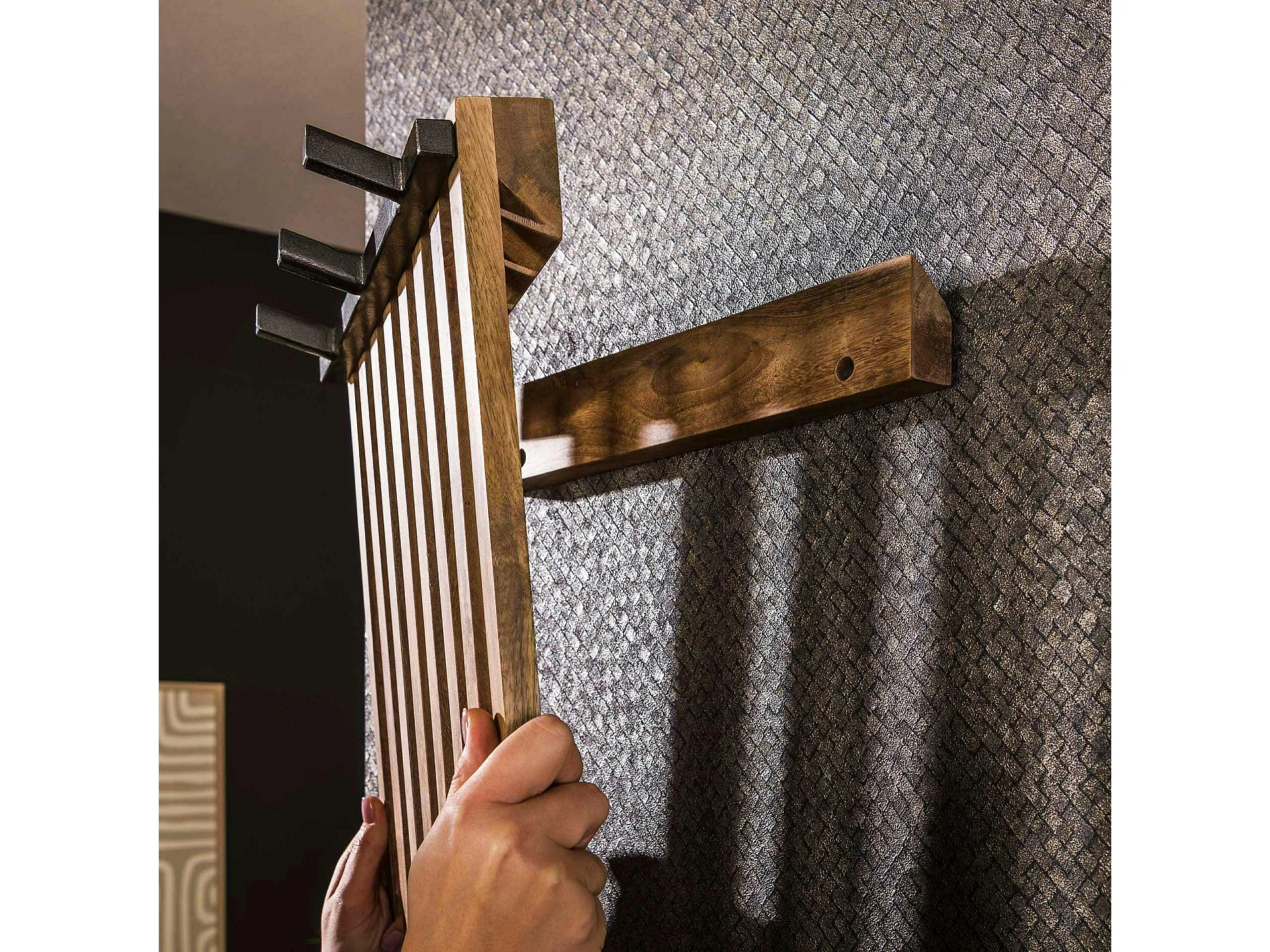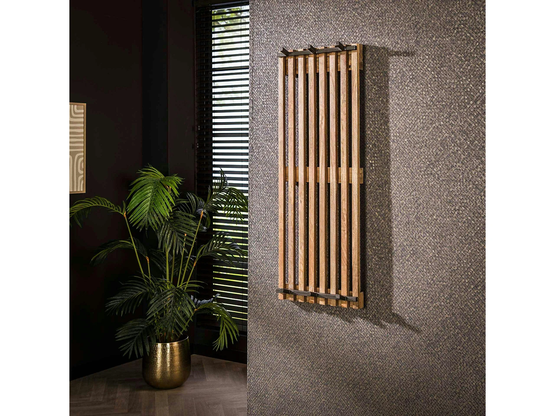 Portemanteau mural rainuré en bois de manguier 6 accroches DELHI
