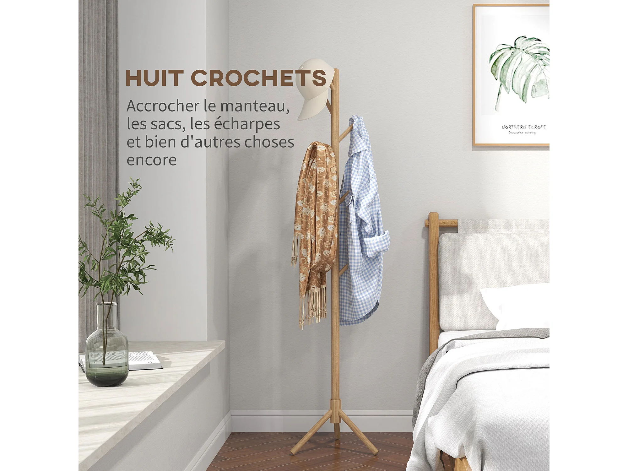 Porte-manteau avec 8 crochets en bois massif coloris naturel - diamètre 43 x hauteur 174 cm