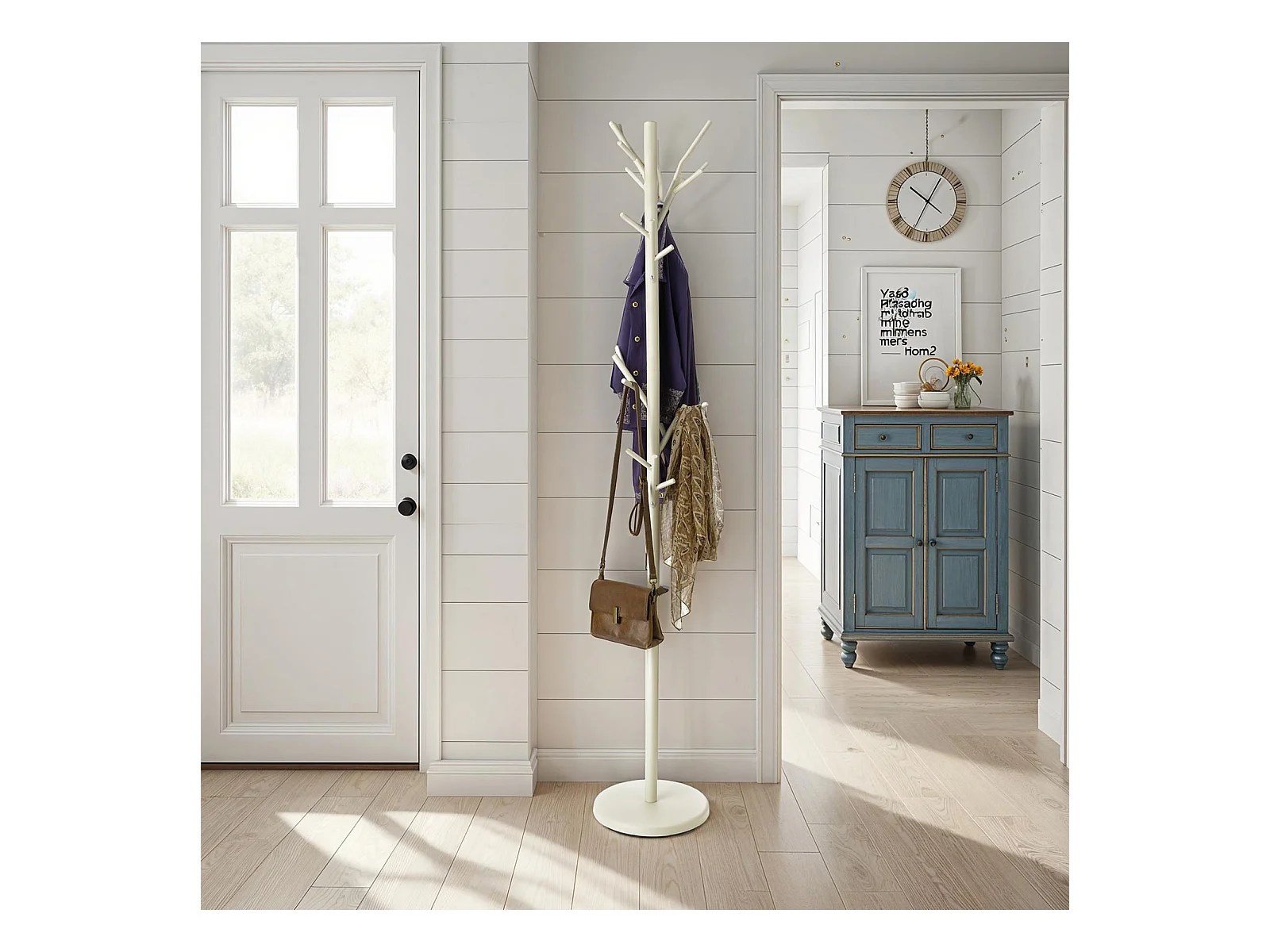Porte-manteau de 8 crochets,en bois coloris Chêne nordique et base en métal blanc- Longueur 30 x Largeur 40 x Hauteur 176 cm