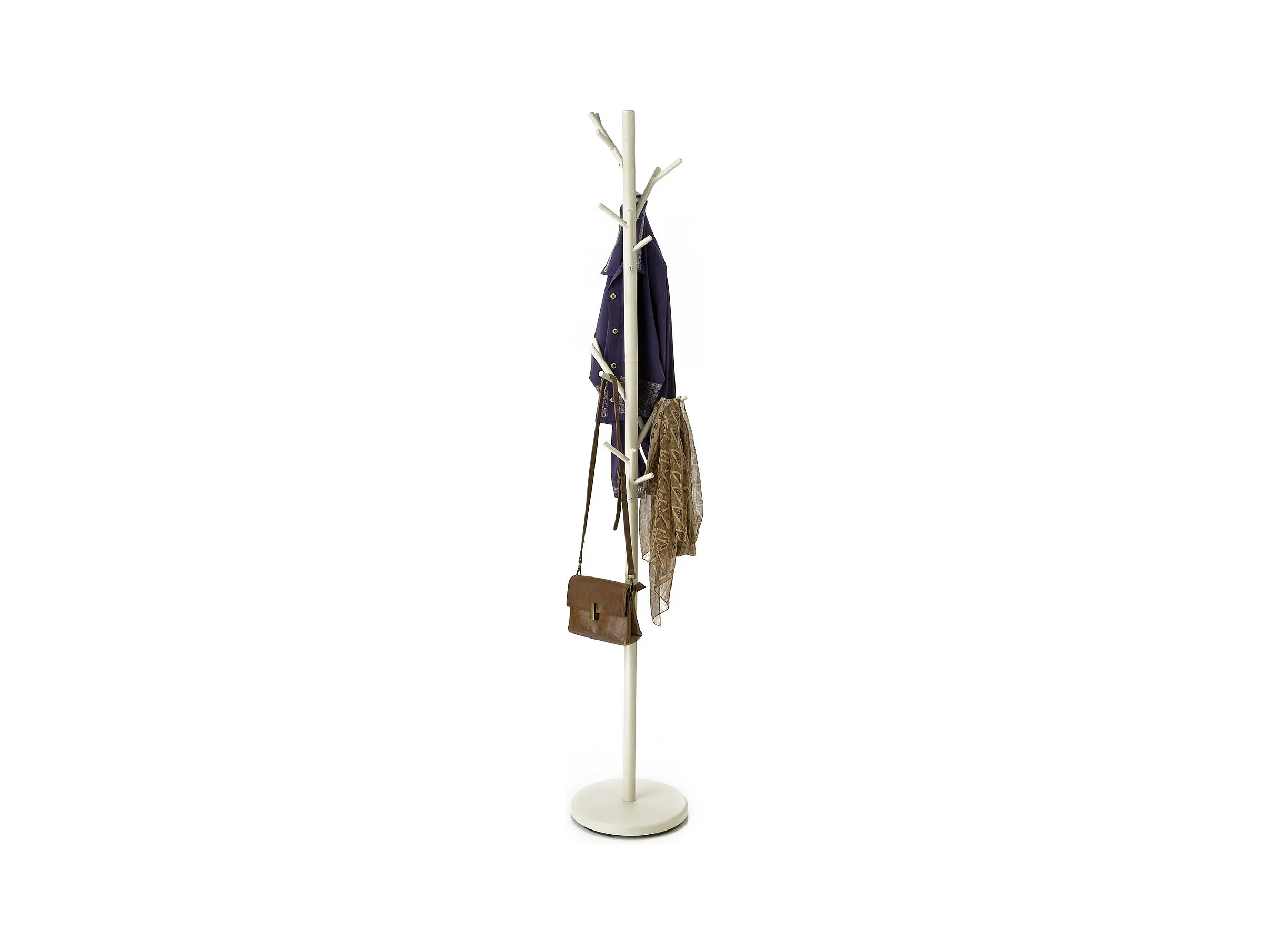Portemanteau ZENO en métal coloris beige portant à vêtements sur pied en forme d'arbre avec 6 crochets sur différentes hauteurs