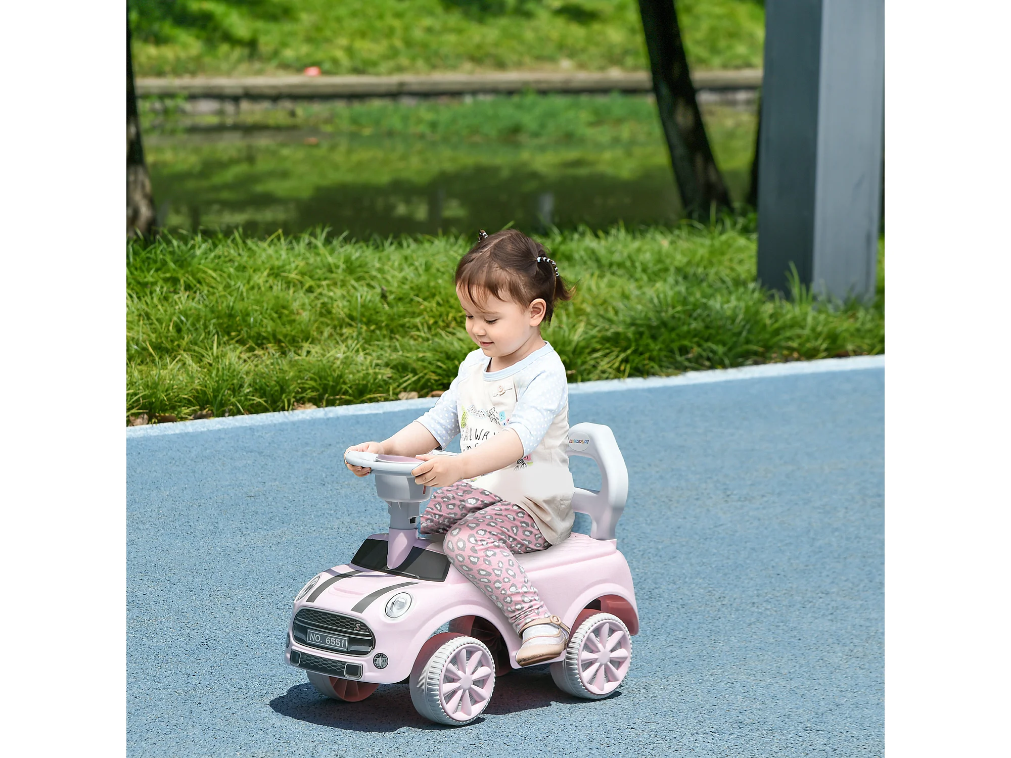 Porteur enfants voiture enfant multi-équipée 12-36 mois klaxon marche-pieds, garde-corps et ombrelle rose