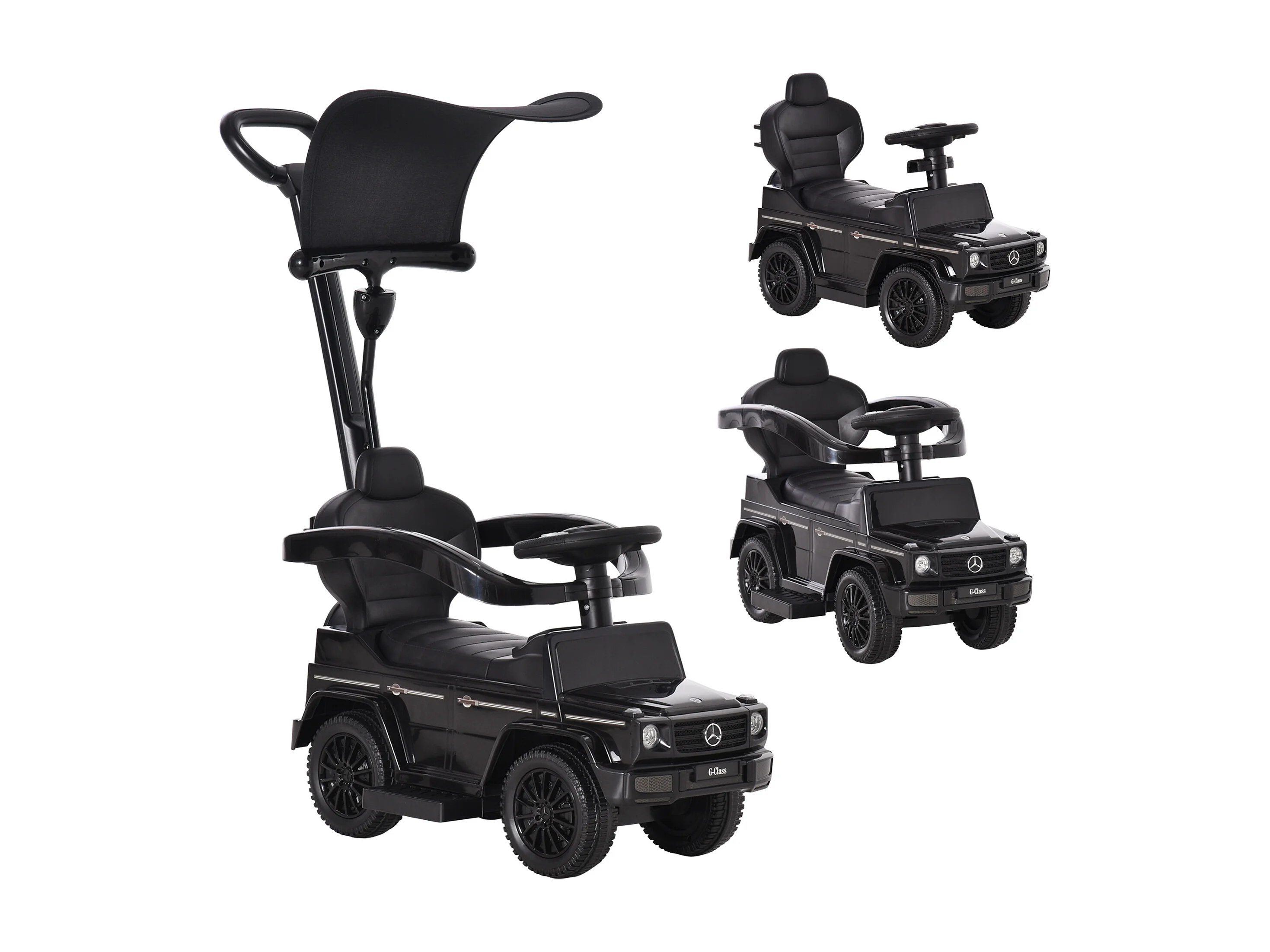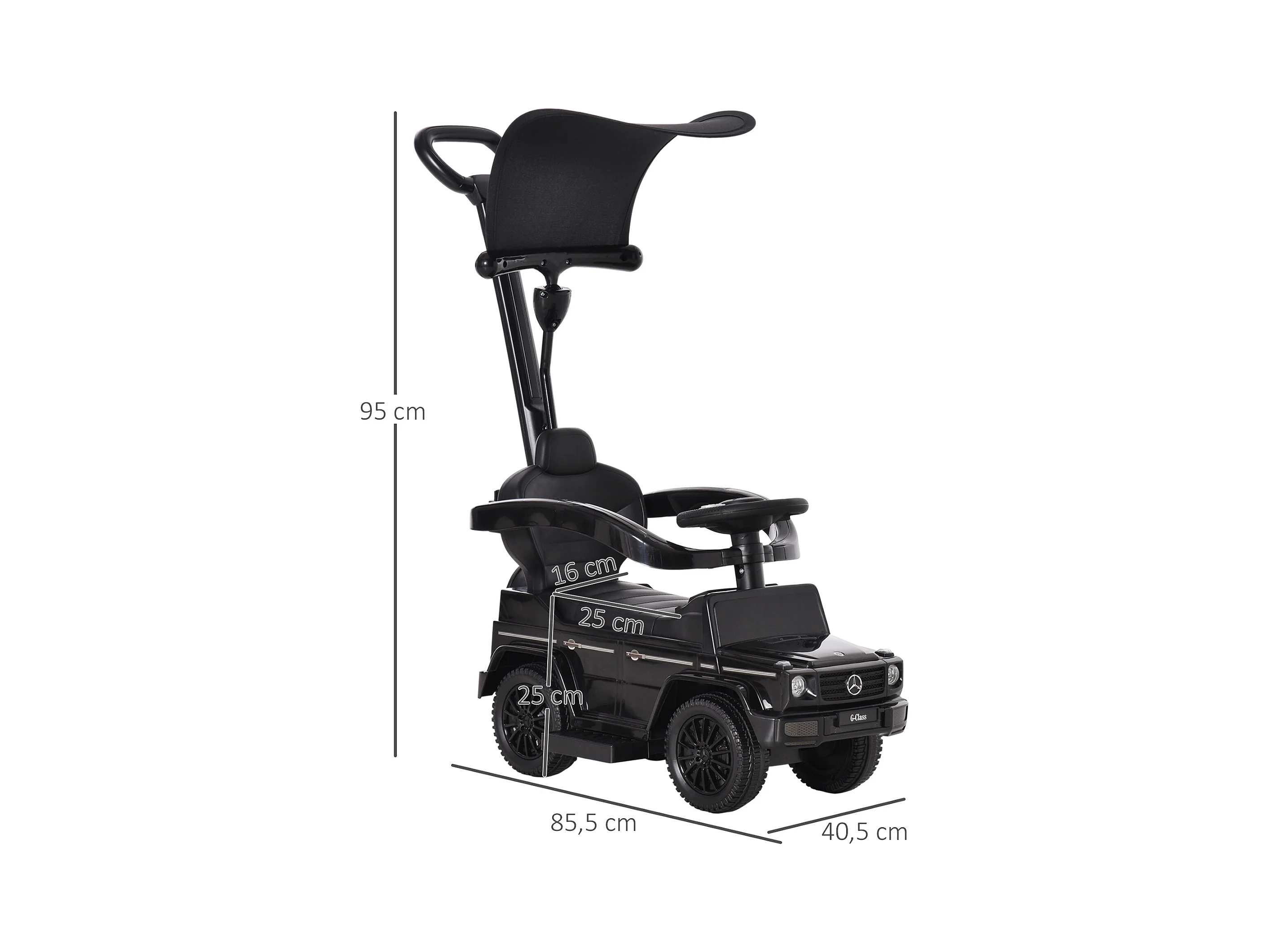 Porteur enfants voiture enfant multi-équipée 12-36 mois klaxon marche-pieds, garde-corps et ombrelle noir