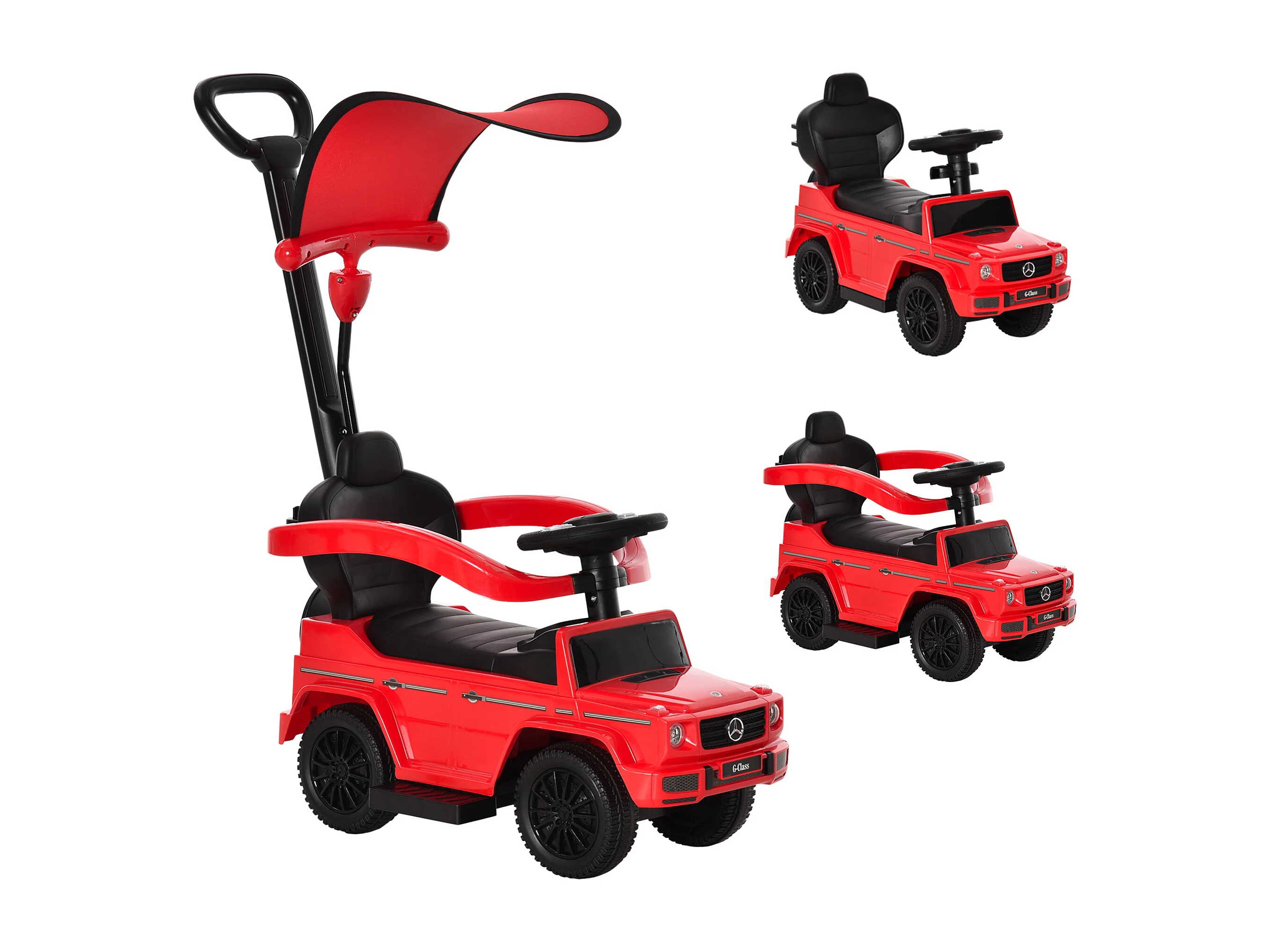 Porteur enfants voiture enfant multi-équipée 12-36 mois klaxon marche-pieds, garde-corps et ombrelle rouge