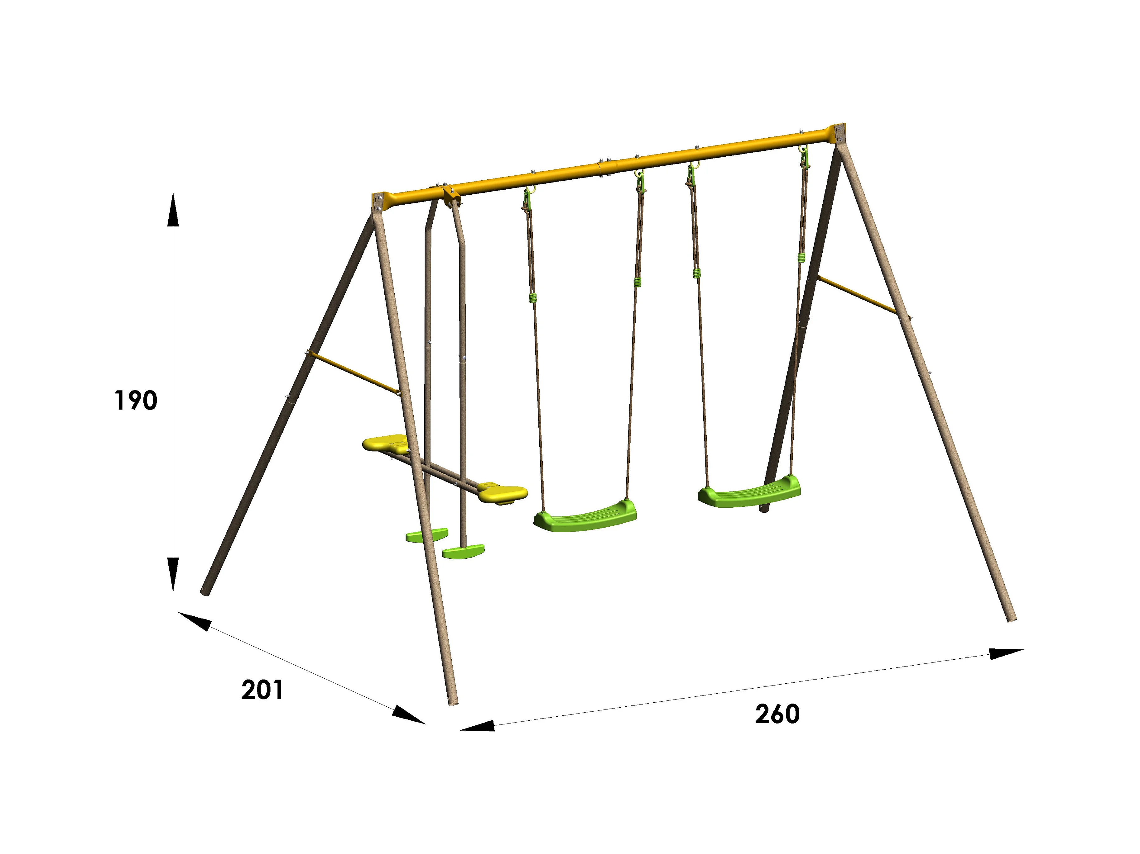 Portique balançoire en métal pour 4 enfants – 1,90 m avec face à face et 2 balançoires
