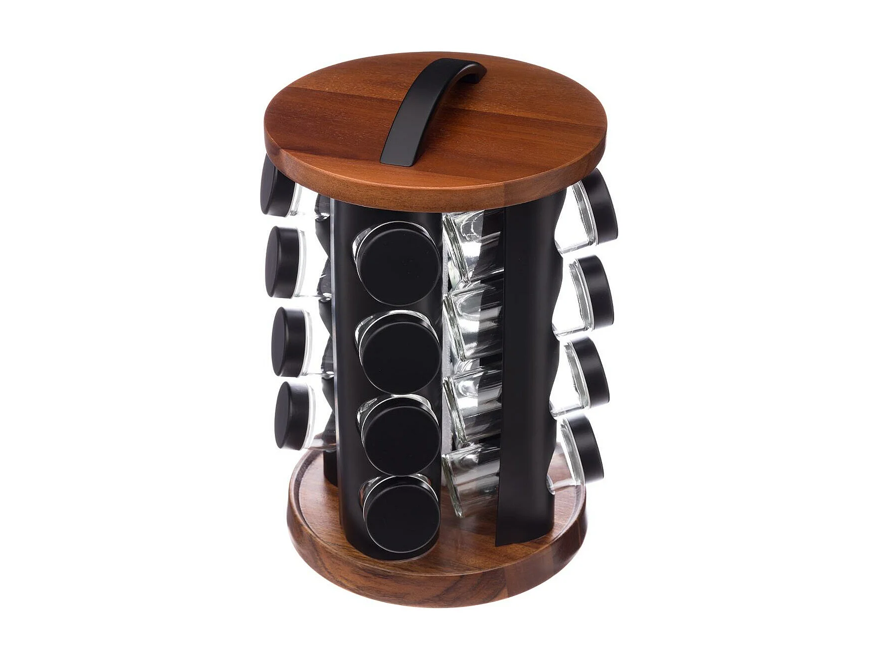 Présentoir à Epices Rotatif "Acacia" 16 Pots Naturel