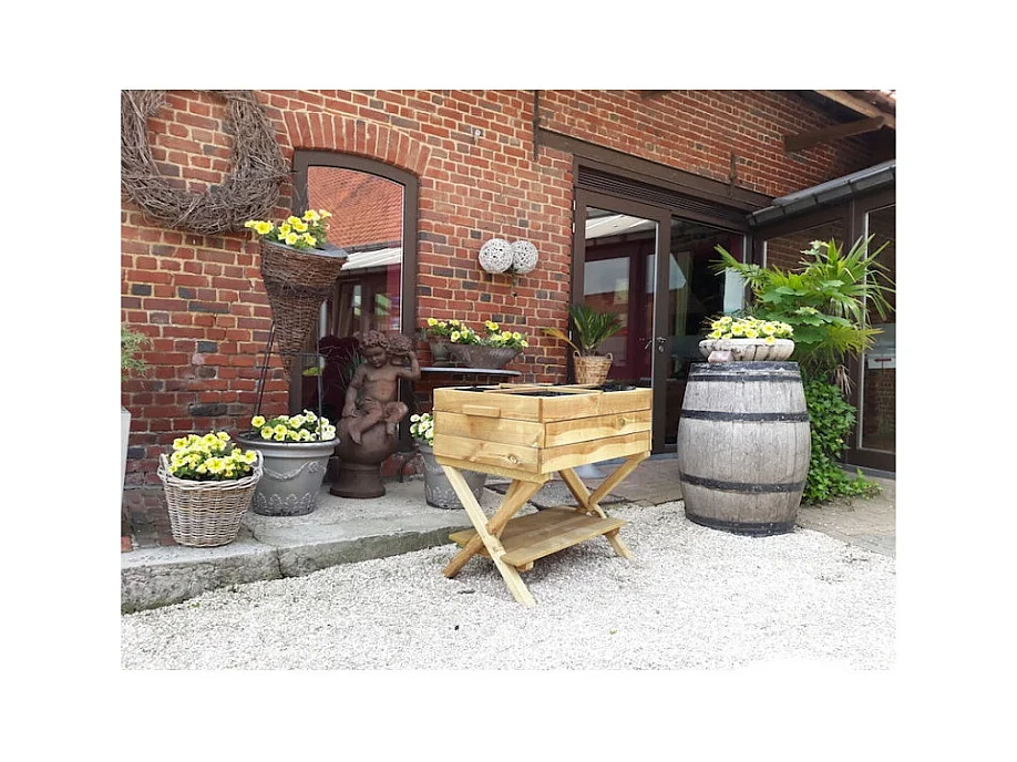 Potager sur pieds réglable 800 x 600 x 800/1000 mm avec croisillons, géotextile et tablette - Solid