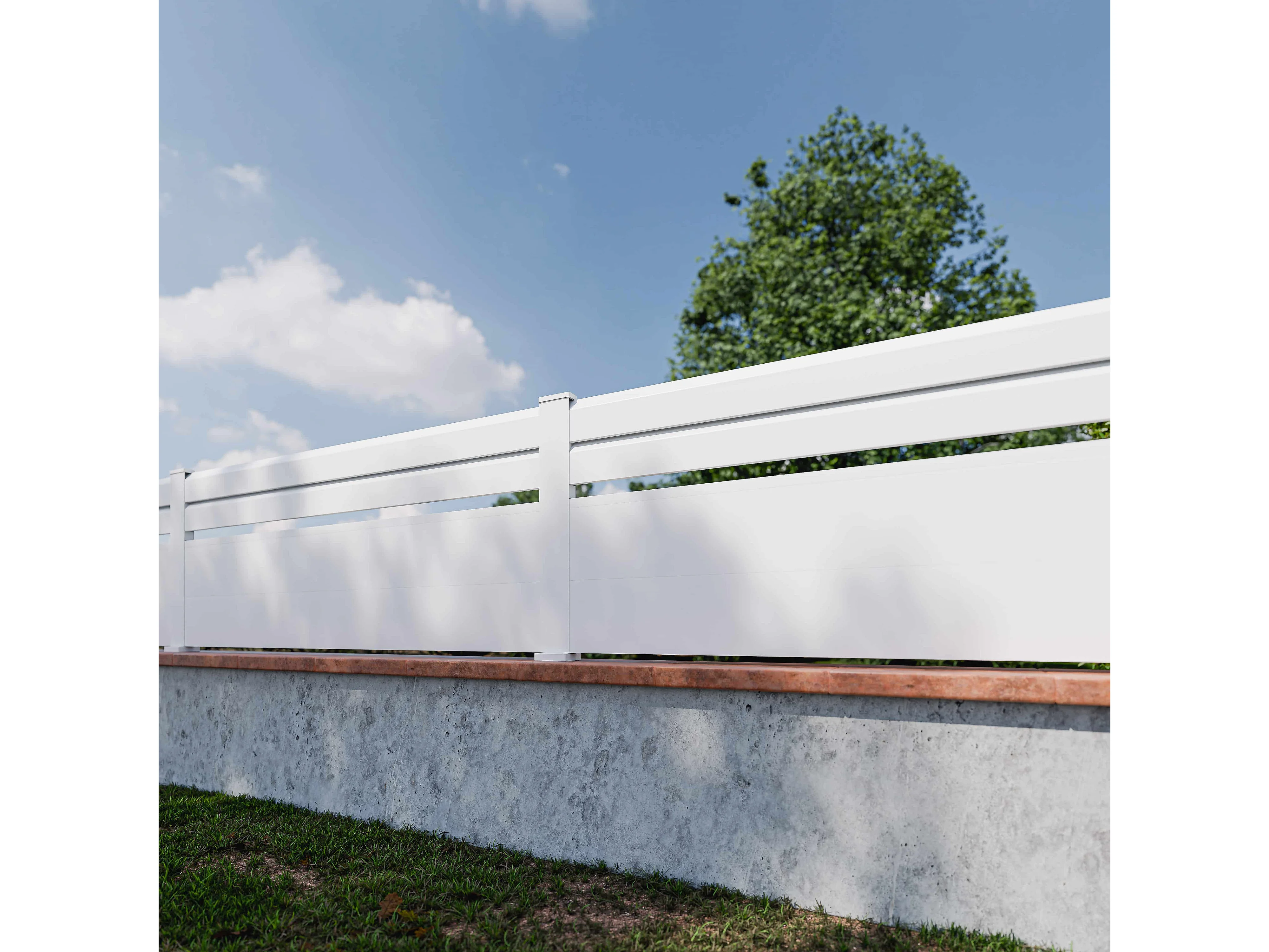 Kit Clôture SLIM PVC Blanc H. 72 cm x L. 5.60 m - 1 lisse + 2 soubassements