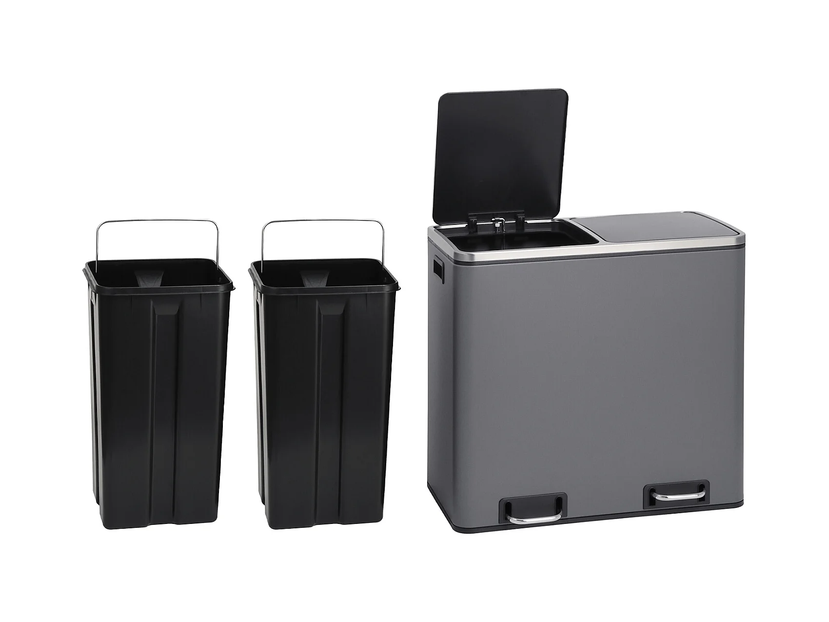 SVITA TM3X18 Poubelle corbeille à papier 54L poubelle tri sélectif gris