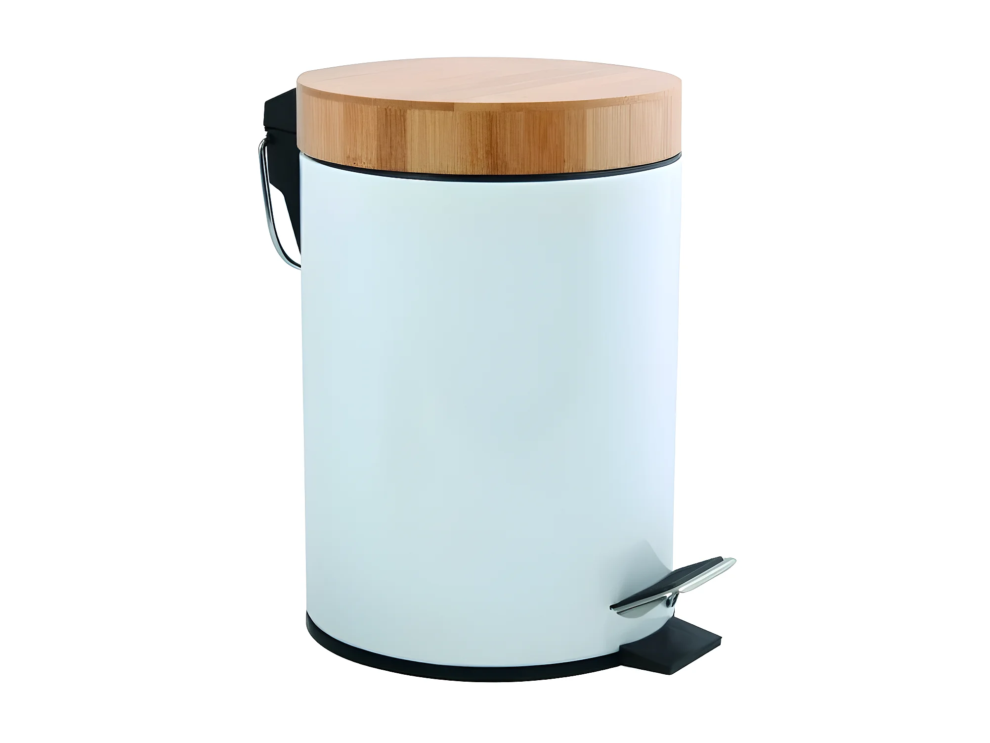 MSV Poubelle à pédale Acier & Bambou AZA 3L Blanc