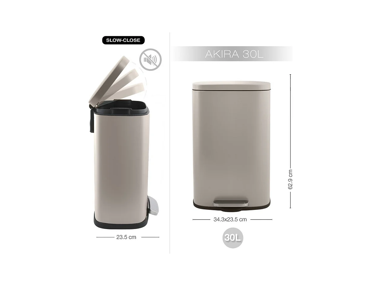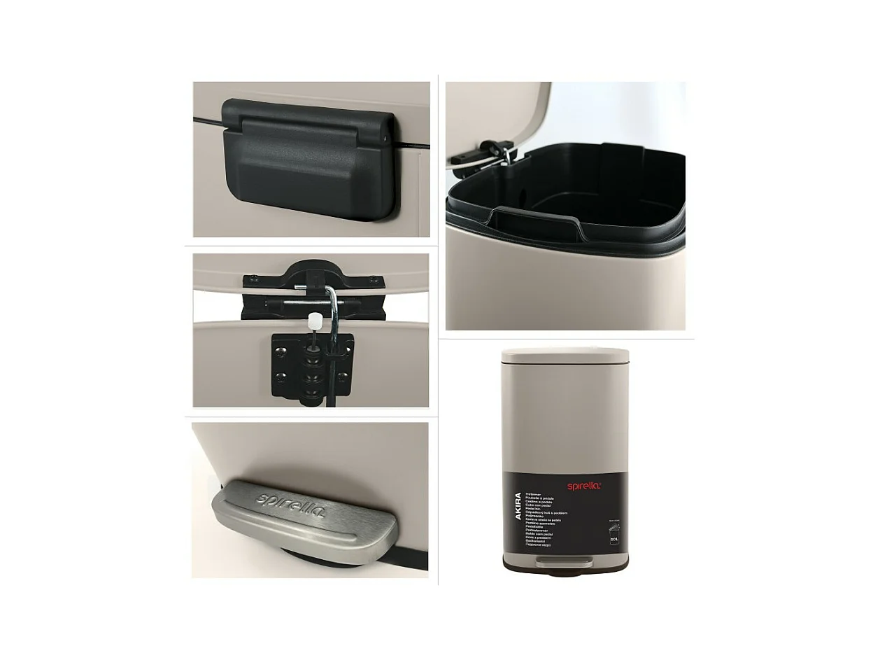 Poubelle à pédale de cuisine Acier AKIRA 30L Taupe mat Spirella