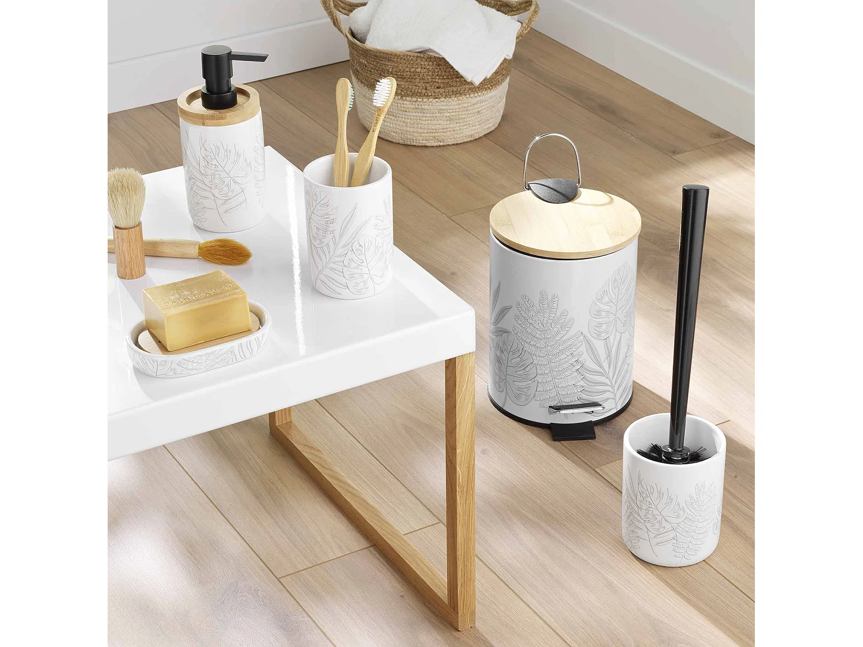 Poubelle de salle de bain en métal Gris et couvercle en Bambou 3 L