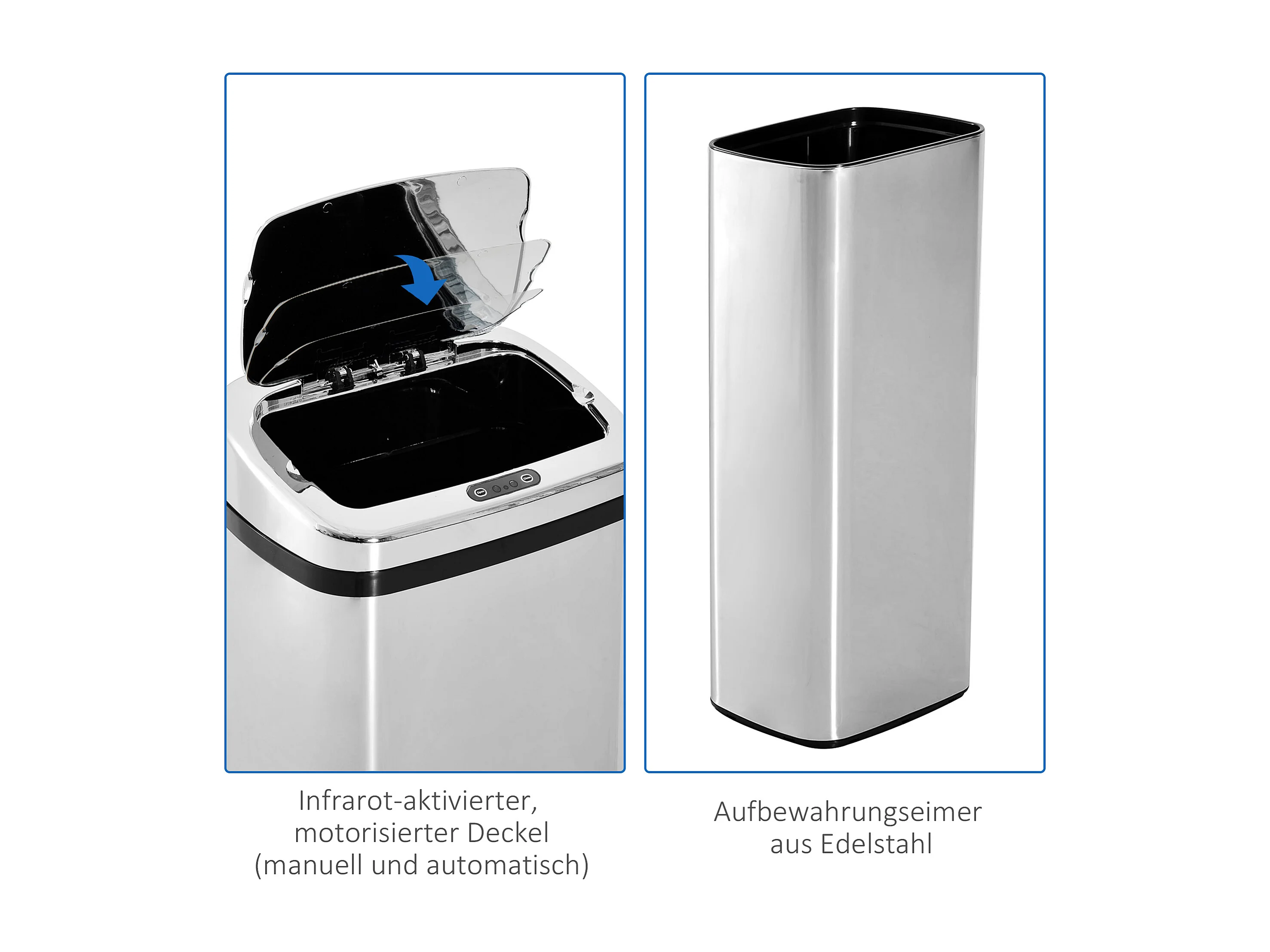 Poubelle automatique 30L, capteur IR, inox, intérieur amovible optionnel, carré (33x25x58cm)