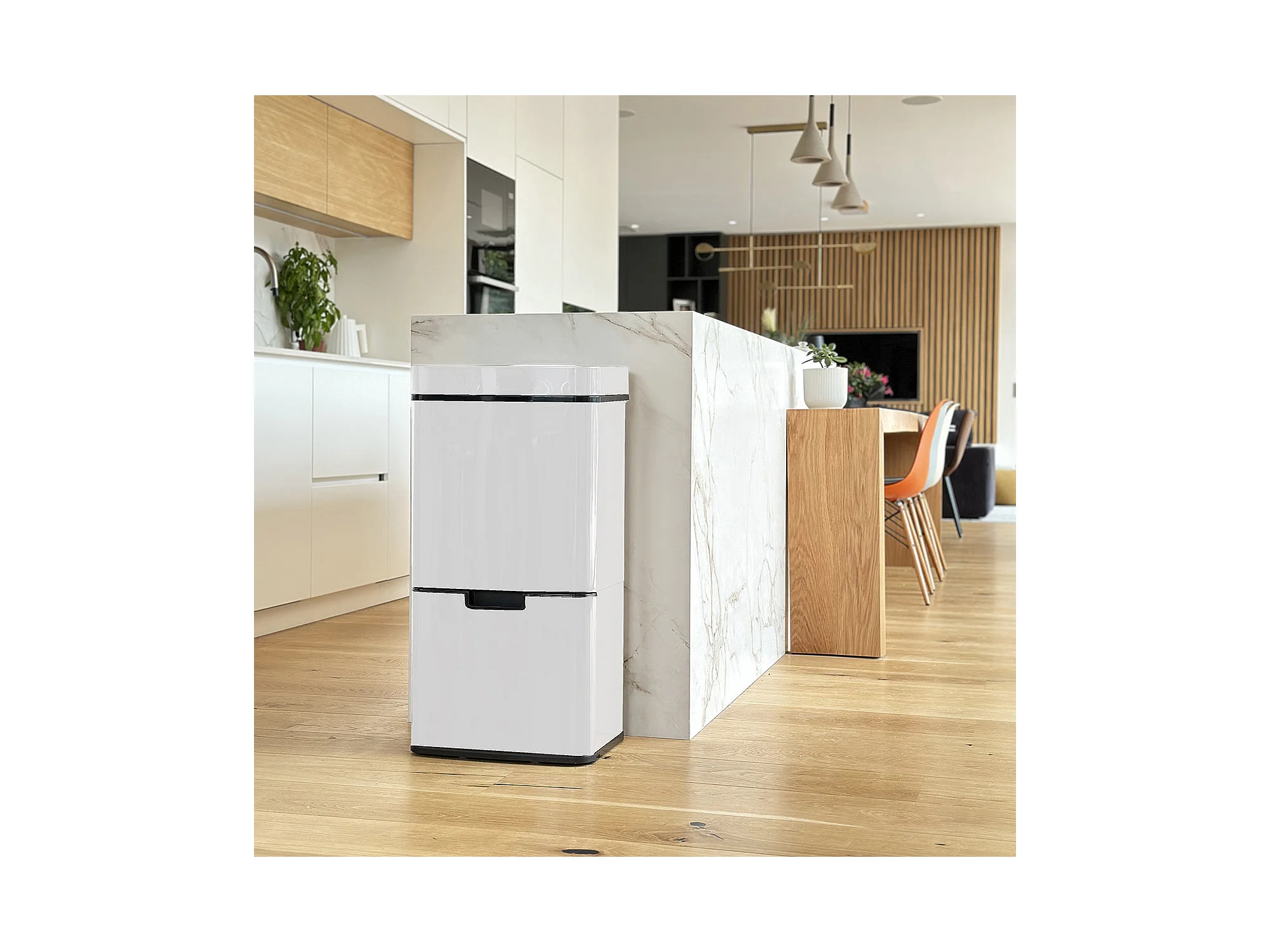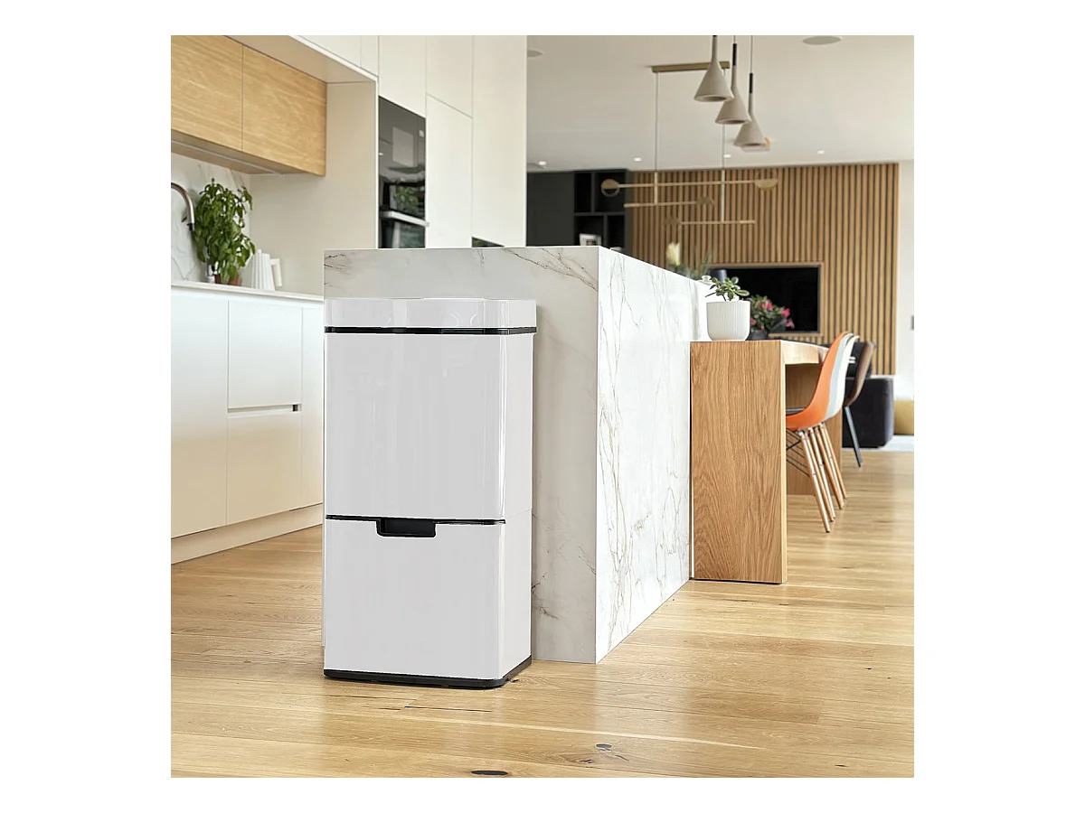 Poubelle de cuisine tri sélectif NARVIK Blanc Acier inoxydable 75L