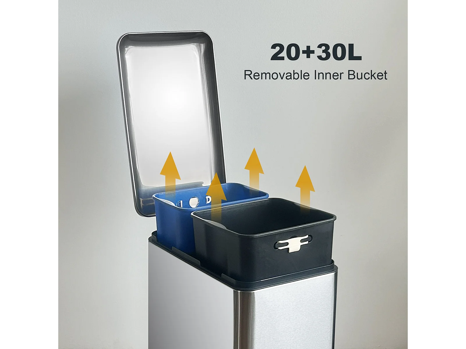 Poubelle de cuisine tri sélectif EDGE Argent Acier inoxydable 50L