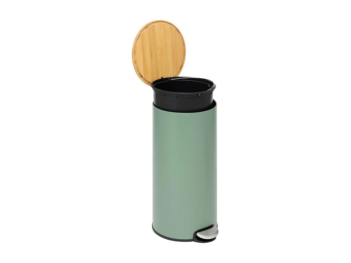 Poubelle en Métal & Bambou "Natureo" 30L Vert
