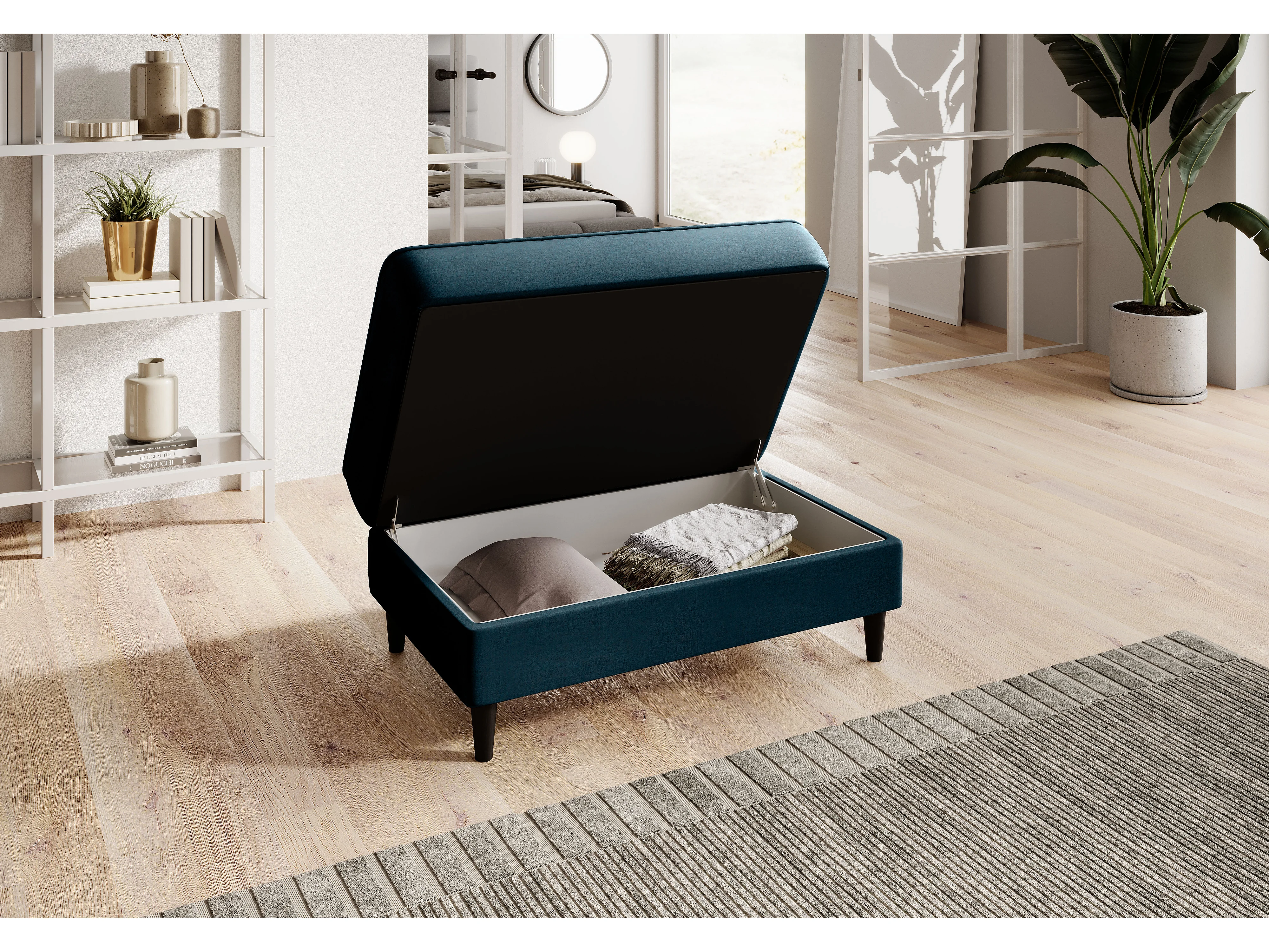 Pouf avec rangement en velours BOZA-Bleu