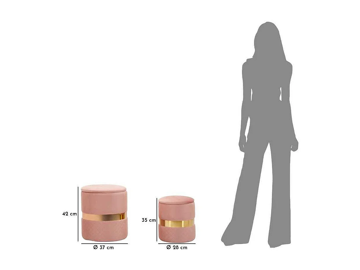 Lot de 2 Poufs MF869, Rose, 37x37x42 cm, Seven Design