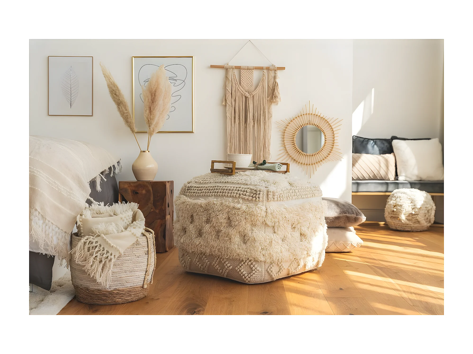 Pouf Bohème Fait à la Main "Bohist" 50cm Naturel