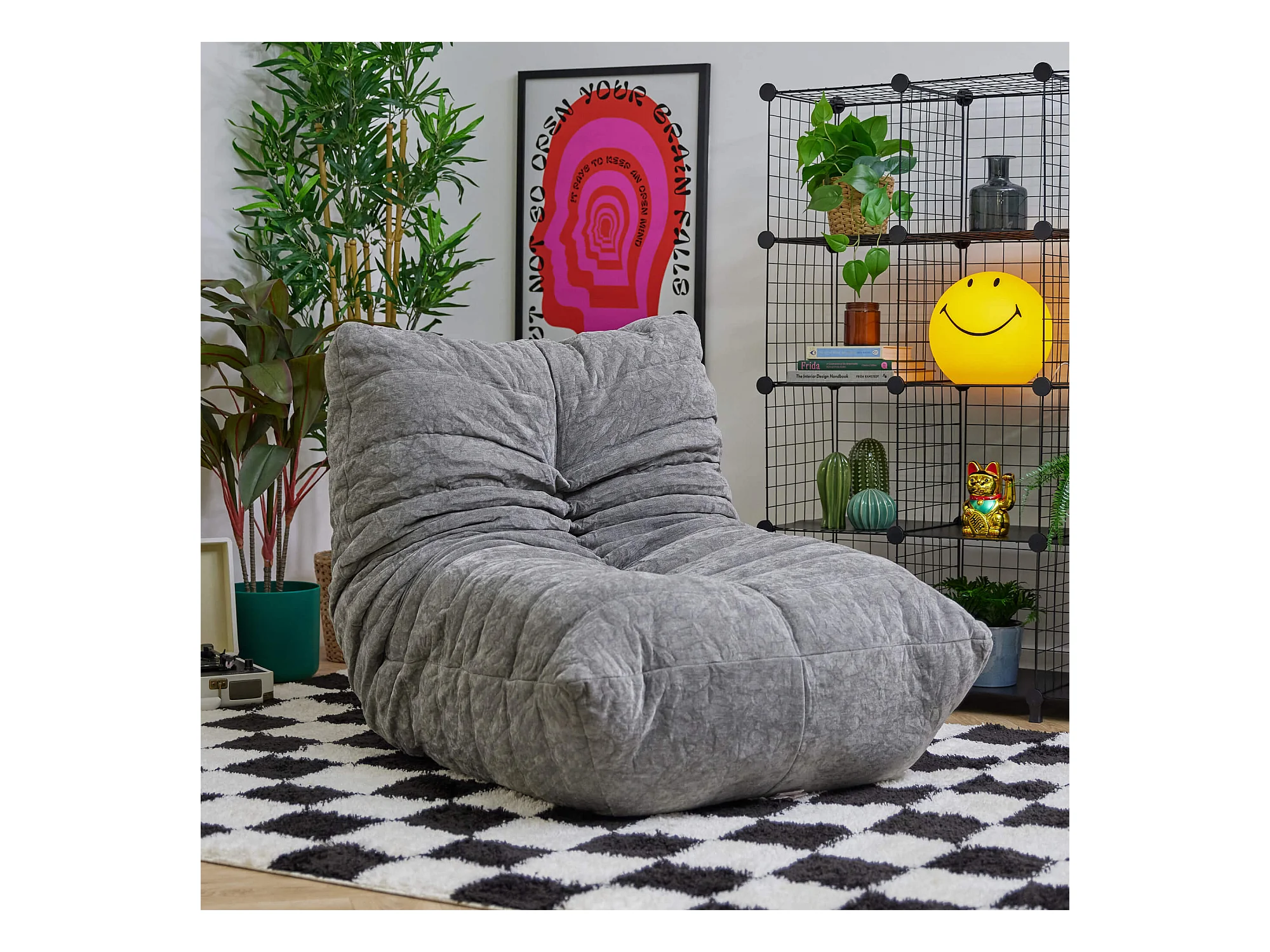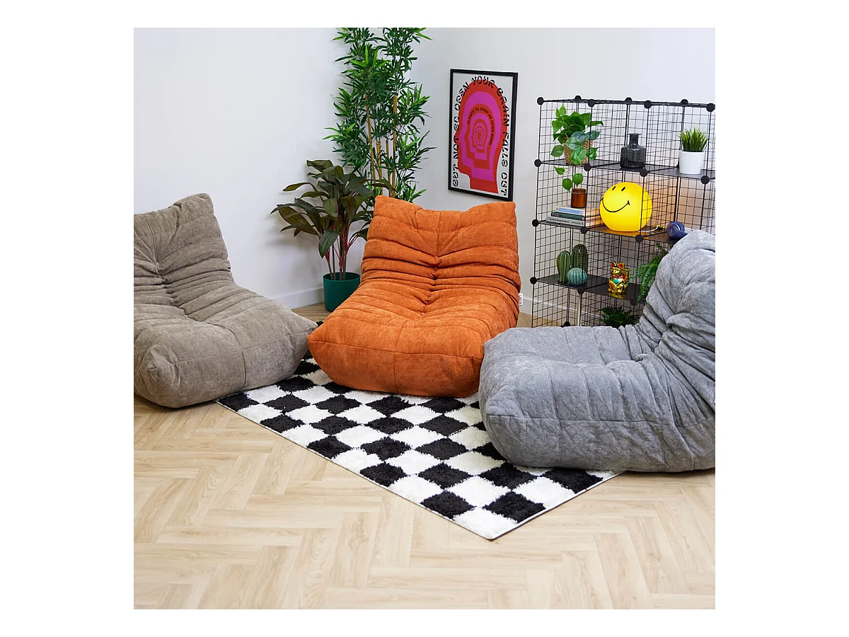 Pouf chauffeuse en tissu chenille garni de mousse extensible, gris - ENZO