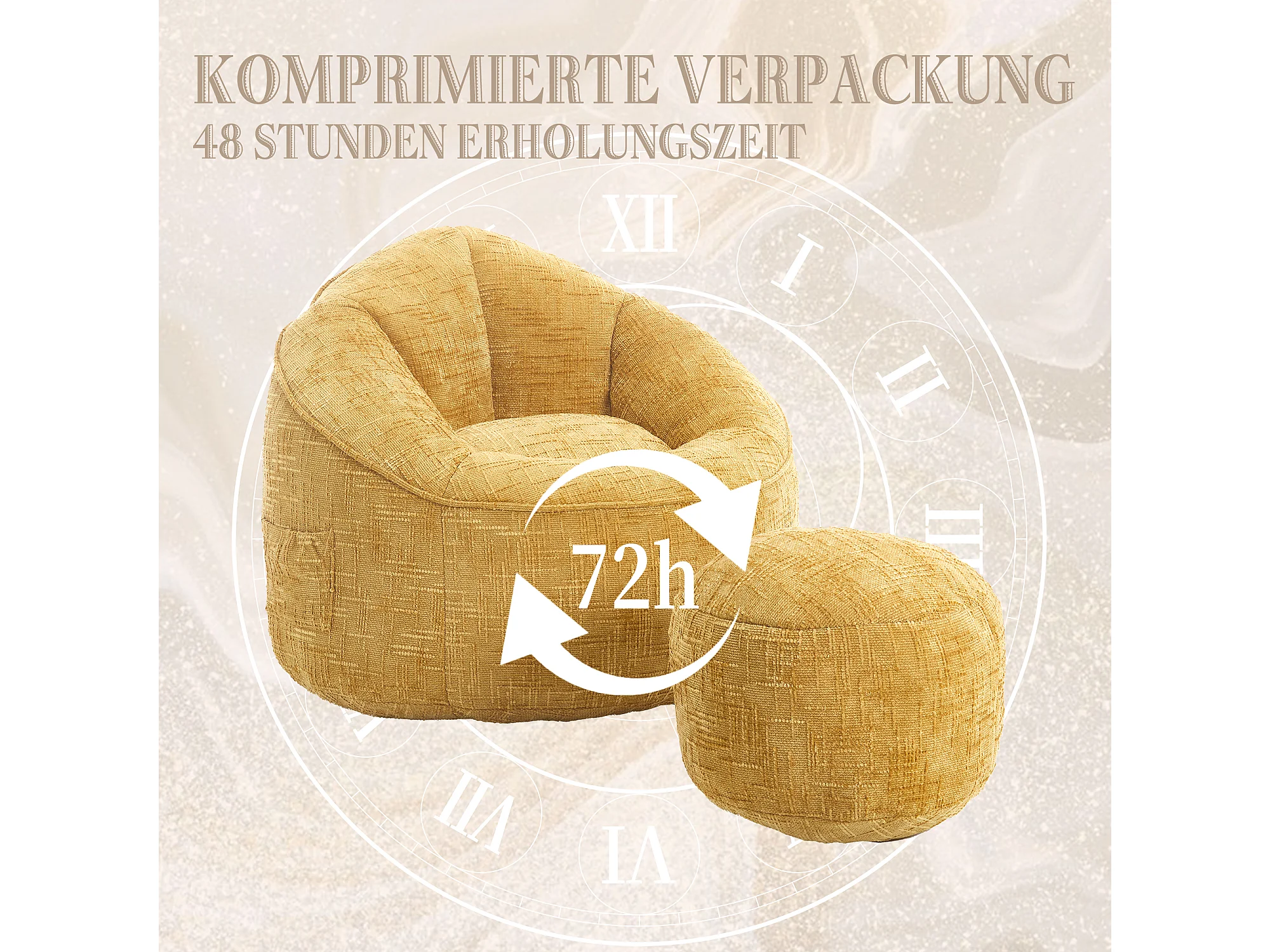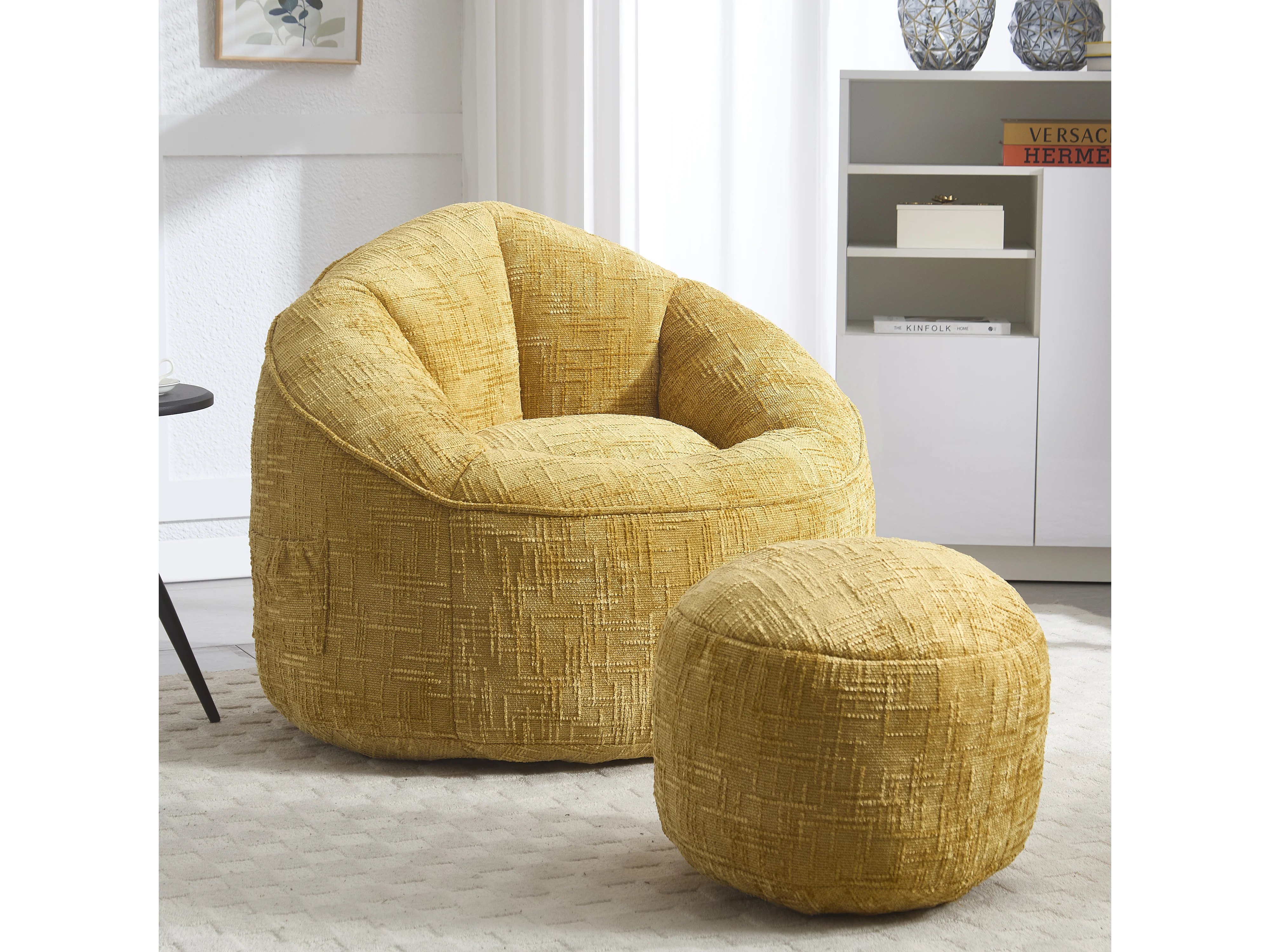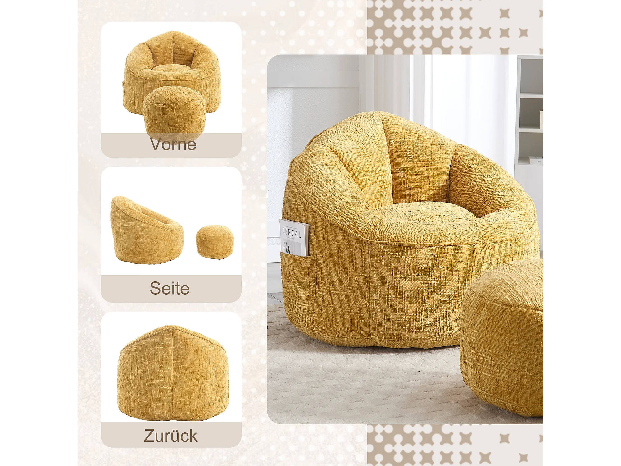 Pouf poire velours chenille jaune - ultra confortable – repose‑pieds inclus – poches latérales – parfait pour salon et chambre