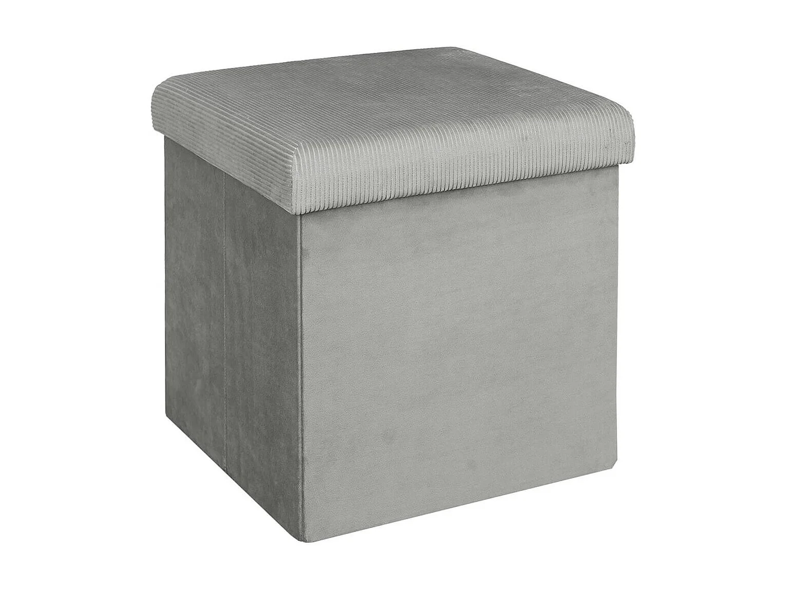 Pouf Coffre Pliable en Velours Côtelé Gris - NEIRA