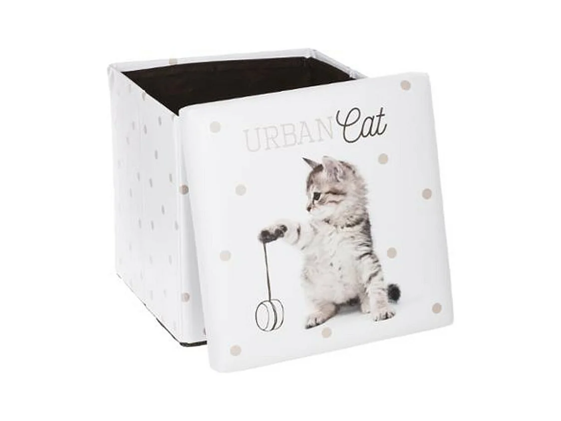 Pouf Coffre Pliable "Urban Cat" 38cm Gris