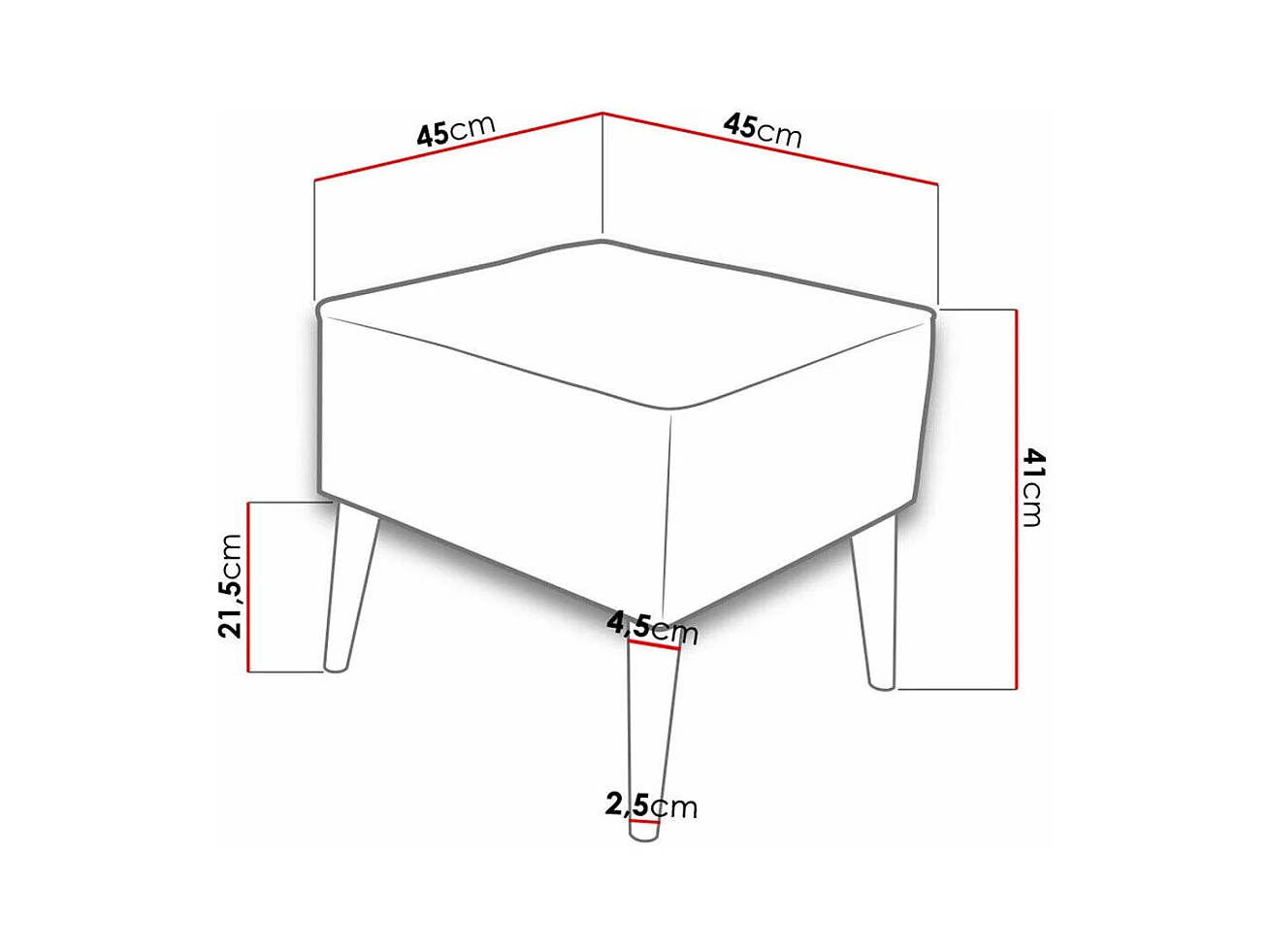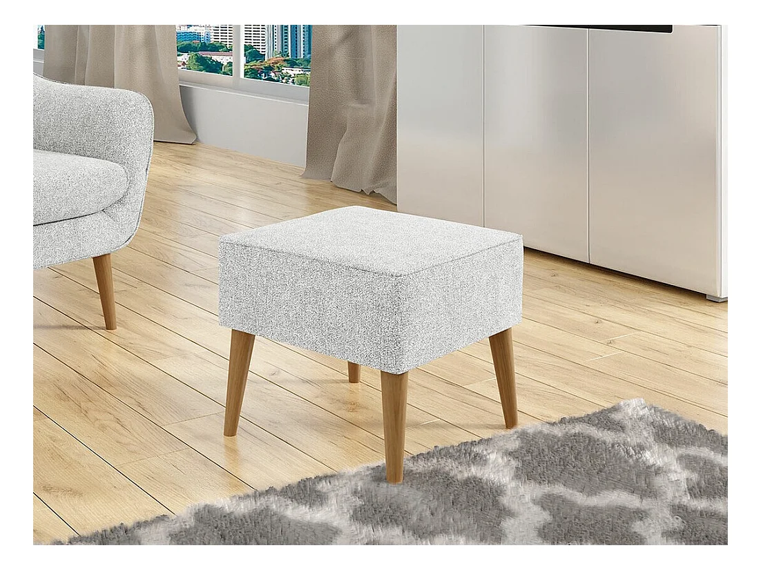 Pouf Comfivo 205, Gris, 41x45x45cm, Tapisserie, Pieds: Bois