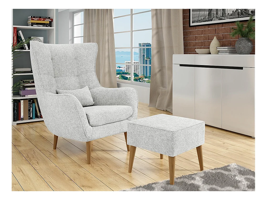 Fauteuil en tissu patchwork gris avec pieds en bois - HAVANA