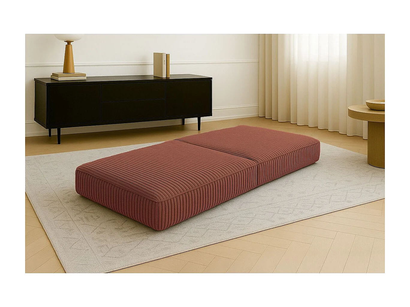 Pouf modulable et convertible - Velours côtelé XL - Terracotta