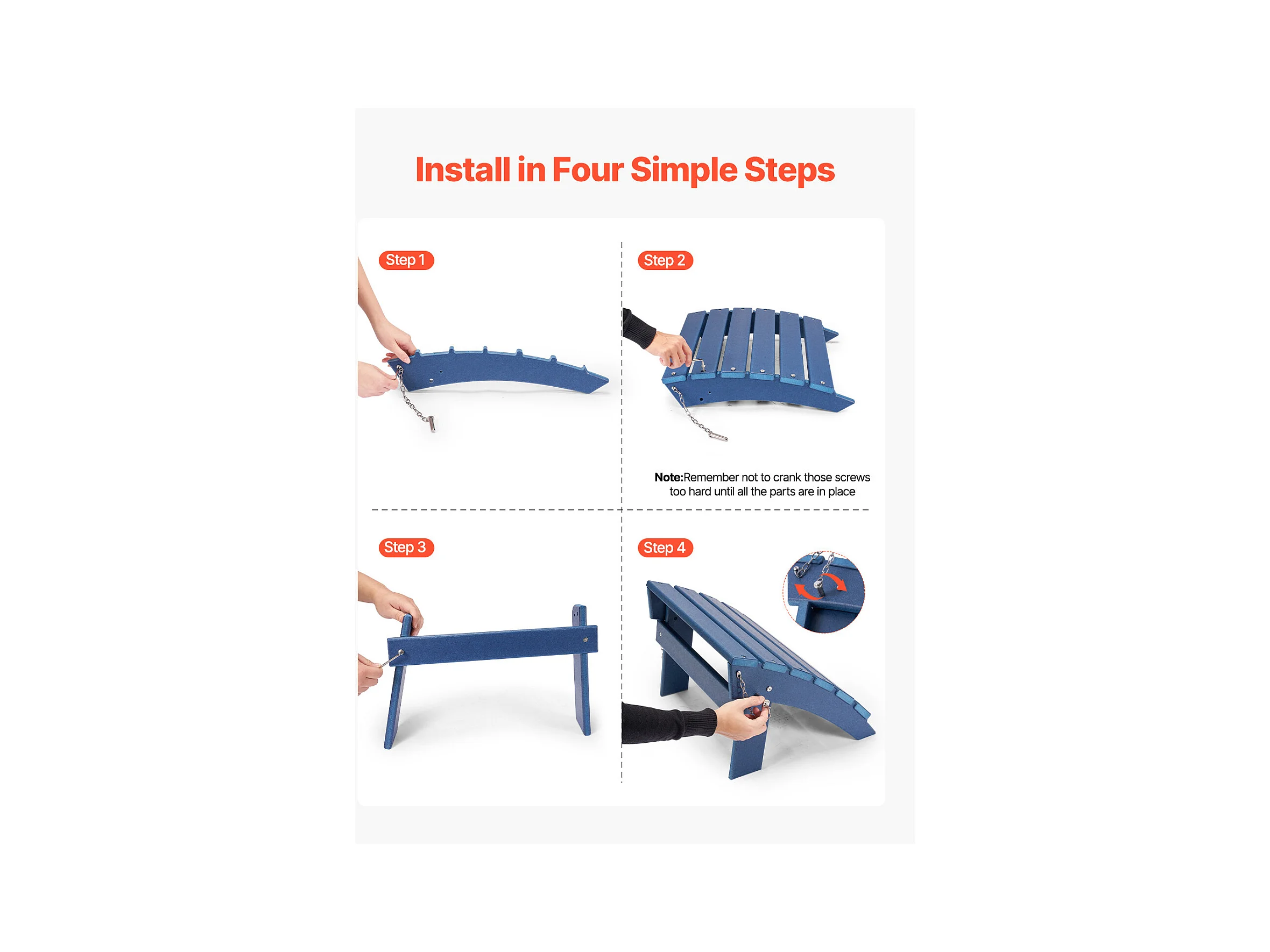 Pouf de Jardin, SucceBuy Ensemble de 2 Poufs Pliants Adirondack en PEHD de 47.5 x 48 x 35 cm, Bleu